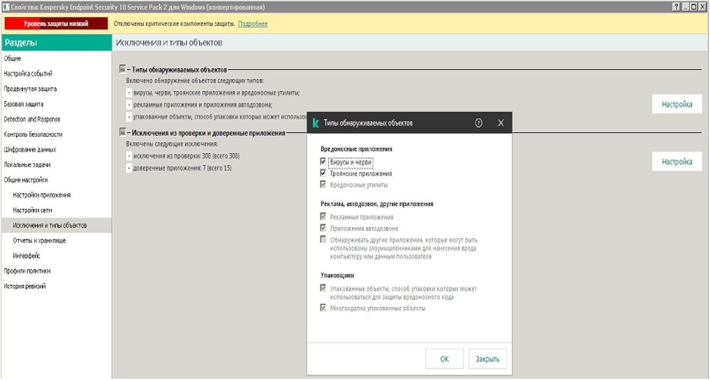 Рисунок В.8 - Установка параметров в разделе "Исключения