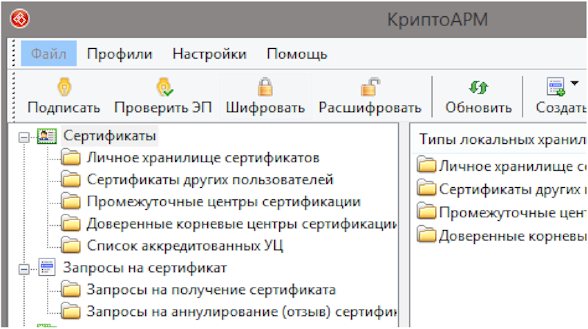 В программе "КриптоАРМ" данная процедура выполняется в следующем порядке.