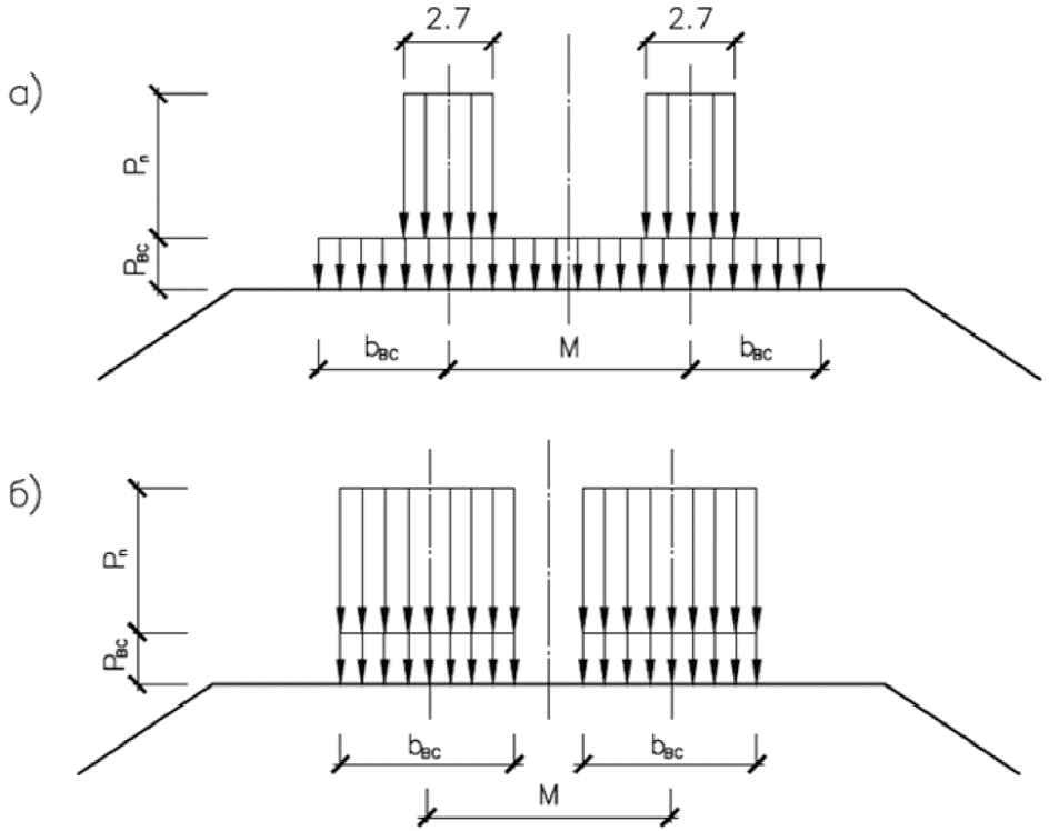 б) локомотивов пассажирских и специальных поездов со скоростью движения до 200 км/ч и максимальной статической нагрузкой на ось не более 226 кН и для вагонов не более 210 кН.