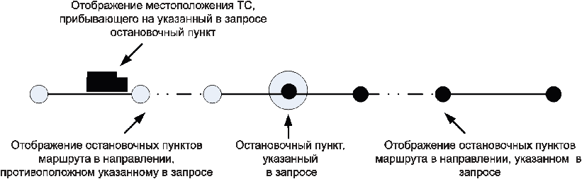- местоположение ТС, прибывающего на остановочный пункт, отображается специальным значком (см.