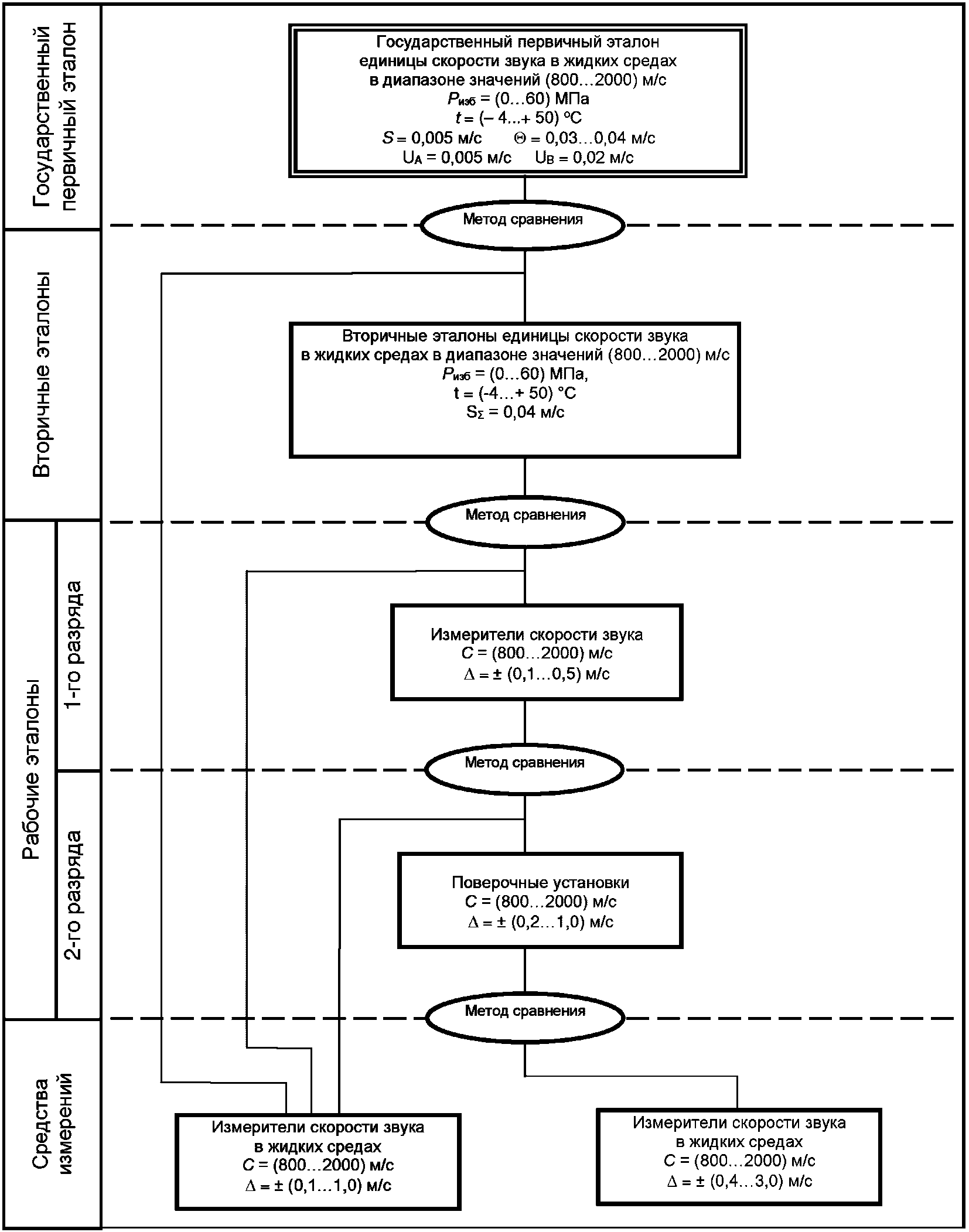 "Государственная поверочная схема для средств измерений скорости звука в жидких средах в диапазоне от 800 до 2000 м/с"
