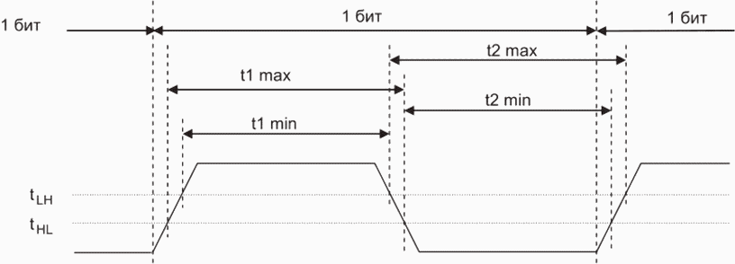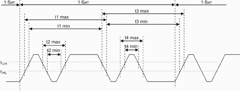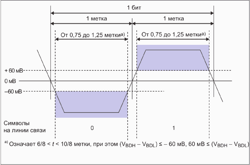 3.1.8 метка; интервал (mark): Символ стандартного временного интервала для сигнала, используемого в технологии манчестерского кодирования в целях передачи двоичного кода по шине.