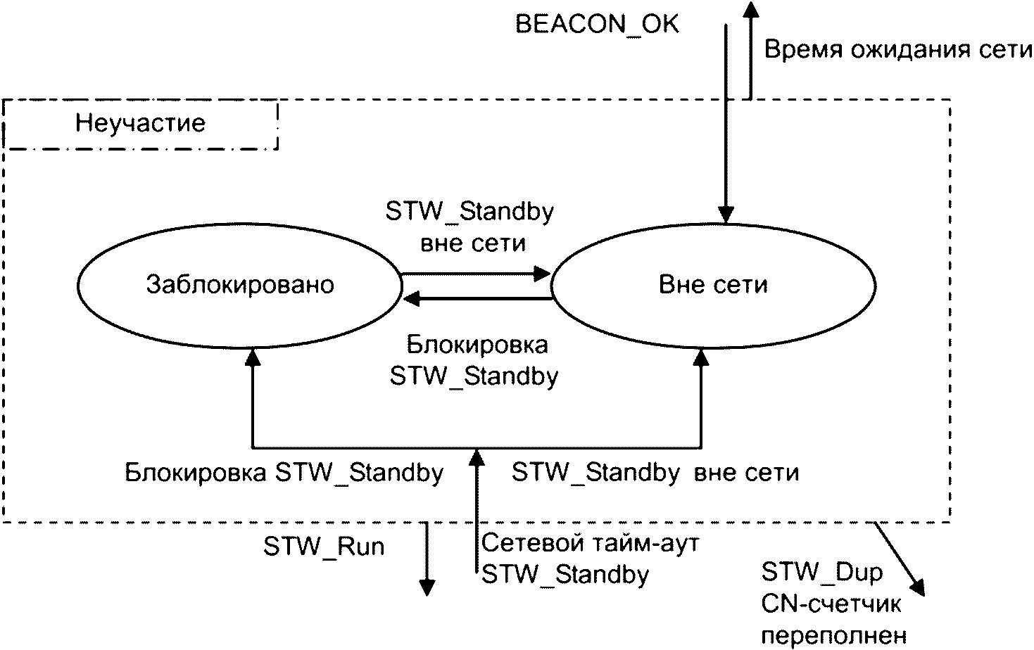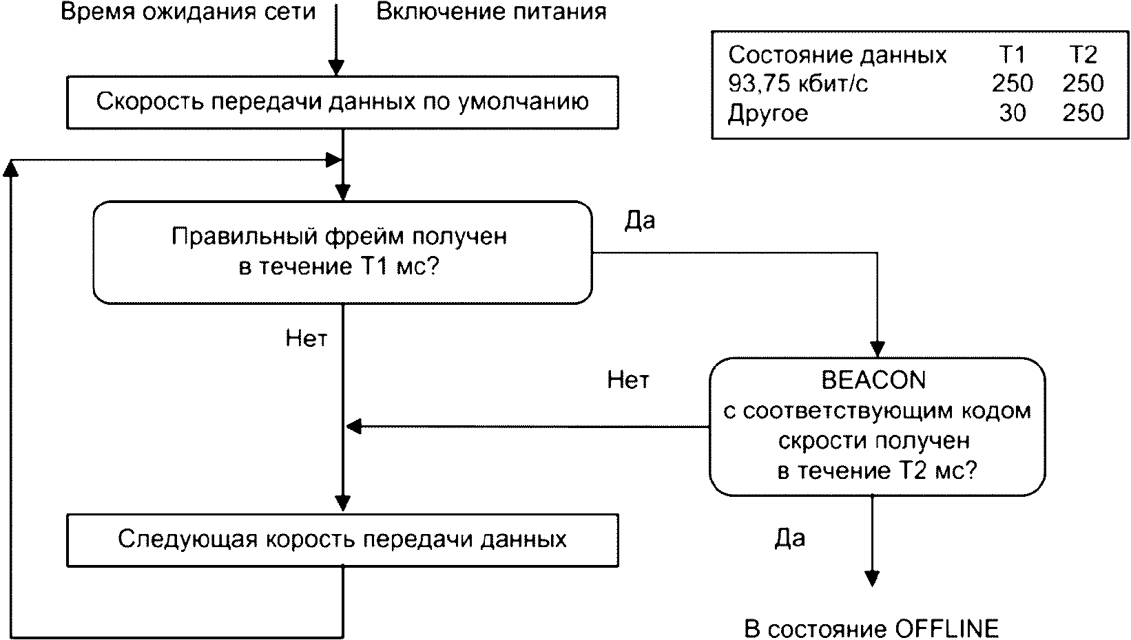 3.1.1 сигнальный фрейм (BEACON): Фрейм, генерируемый мастером (ведущим устройством) для уведомления ведомых устройств и повторителей о текущей скорости передачи и сетевом соединении.
