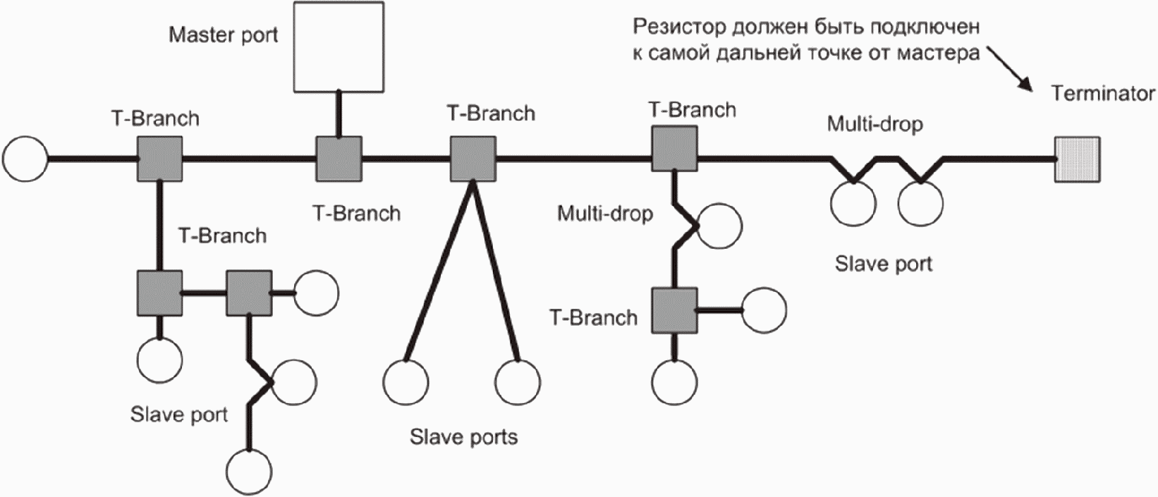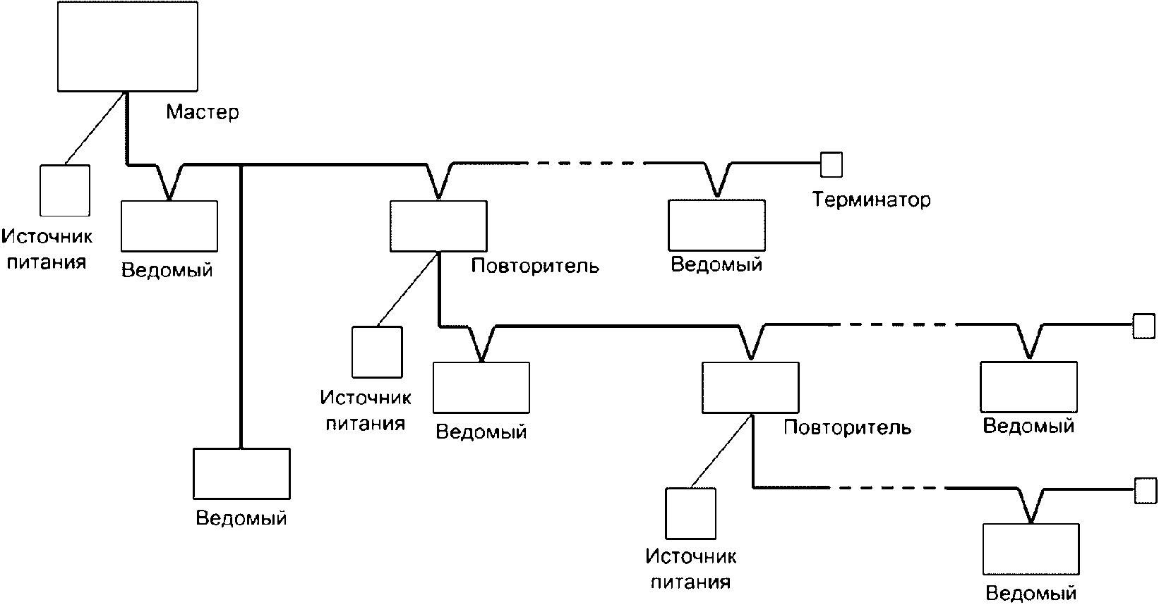 Ключевые слова: интерфейс, мастер (ведущий), ведомый, привод, контроллер, повторитель, фрейм, данные, запрос, ответ, команда, функция, запись, считывание, достоверность, мониторинг, сбой, сброс |