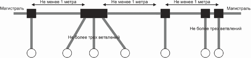 3.1.3 ответвление (branch): Отрезок кабеля, с помощью которого осуществляется Т-образное соединение с магистралью или вспомогательной магистралью.