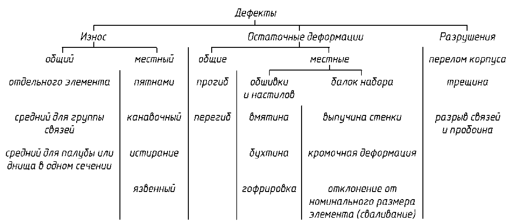 1. Дефектация - определение технического состояния элементов судна и судовых технических средств путем осмотра и инструментального контроля нормированных параметров, анализа и обработки результатов контроля, а также определение дефектов, подлежащих устранению.