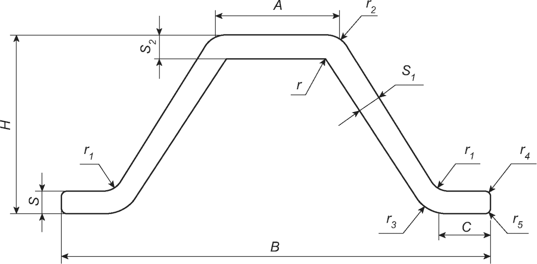 Примечание - Радиусы притупления острых кромок (r3, r4, r5) должны соответствовать требованиям ГОСТ 8617, ГОСТ 19657. | ||||||||||||||