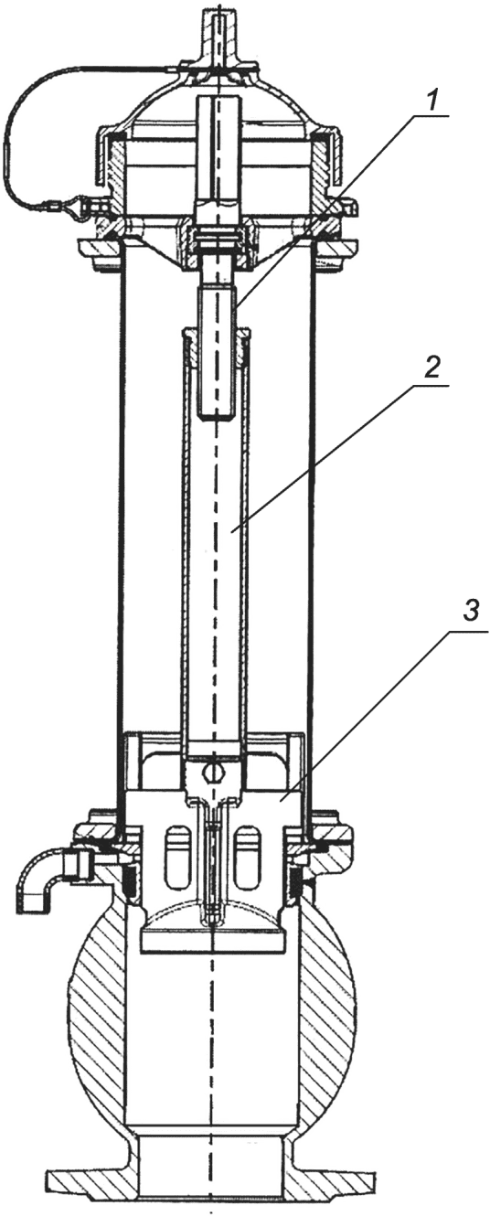 1 - шпиндель; 2 - штанга; 3 - клапан