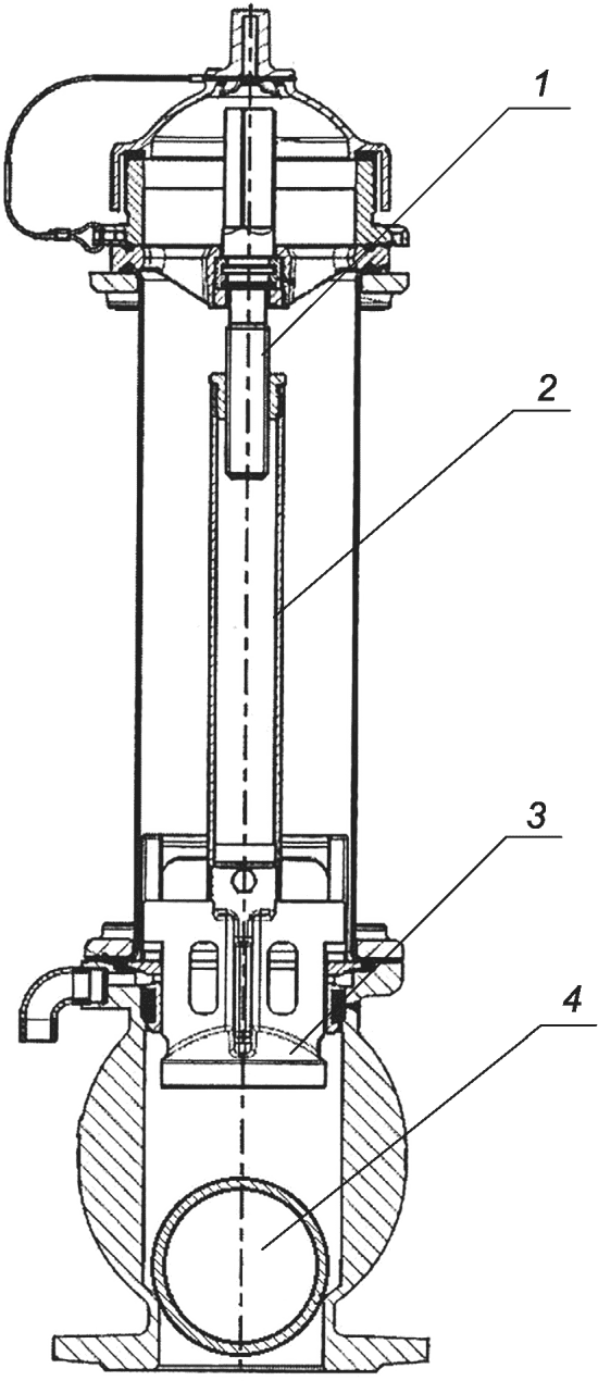 1 - шпиндель; 2 - штанга; 3 - клапан; 4 - резервный клапан