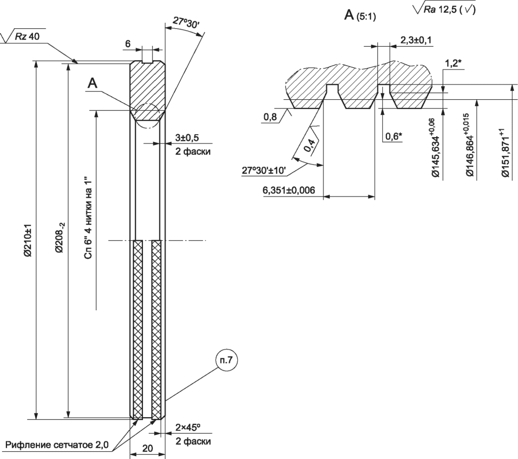 7 Маркировать: Сп 6" 4 нитки на 1" - НЕ.
