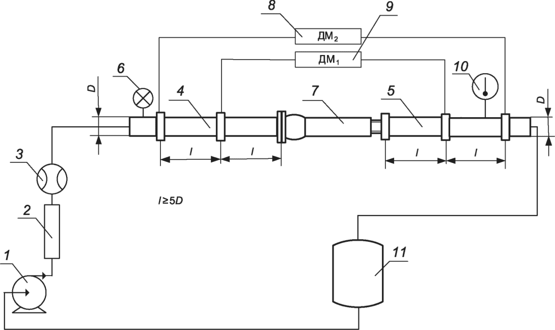 воды; 3 - расходомер; 4 - мерная вставка; 5 - мерная