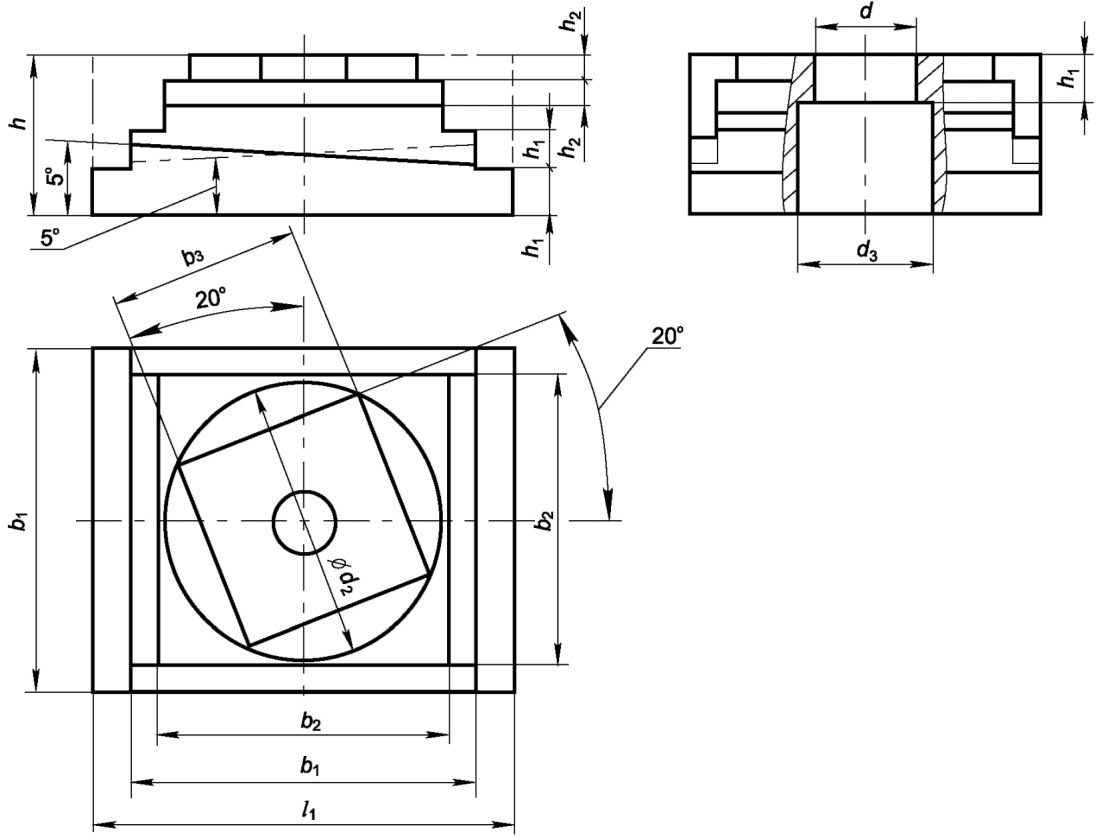 Расстояние h3 от вертикальной оси шпинделя до оси среднего паза стола | - | - | - | - | 55 | 70 | 90 |