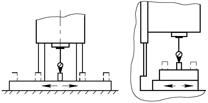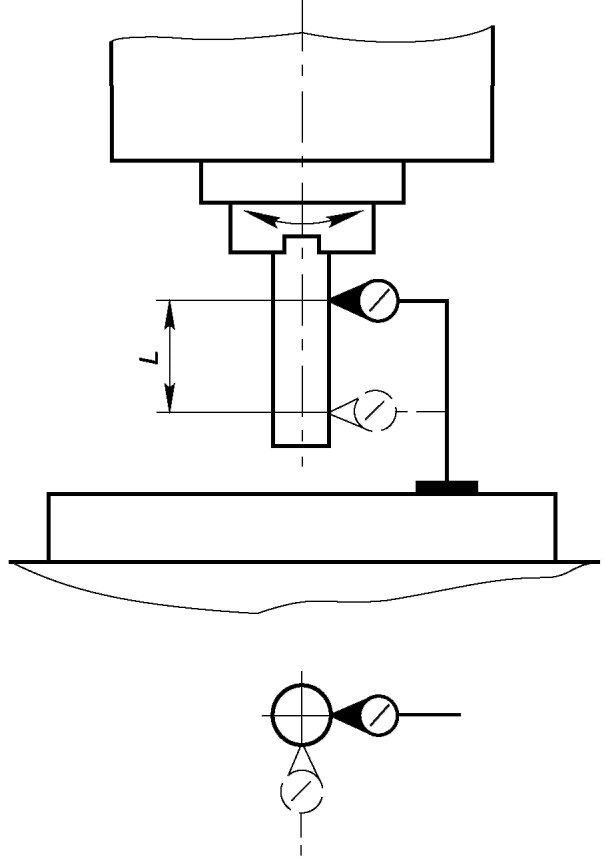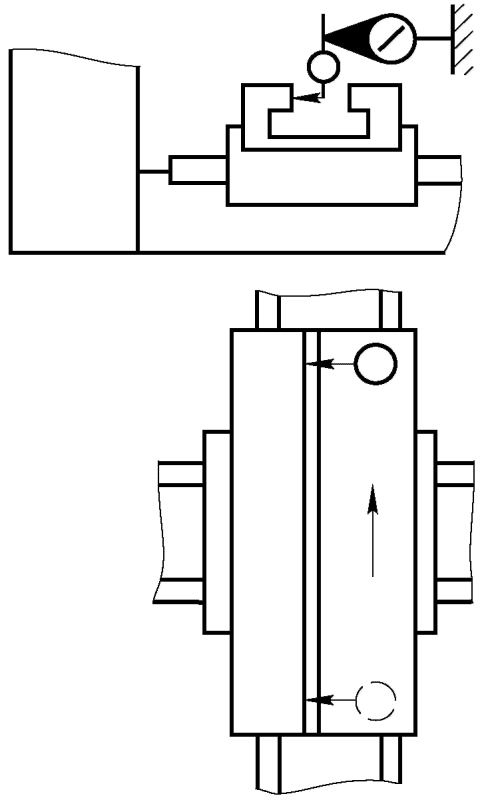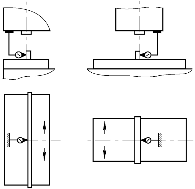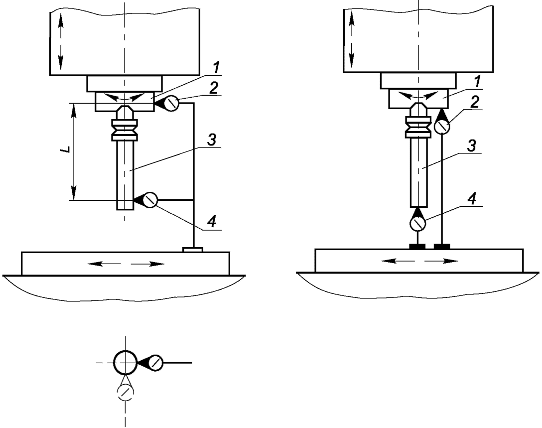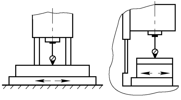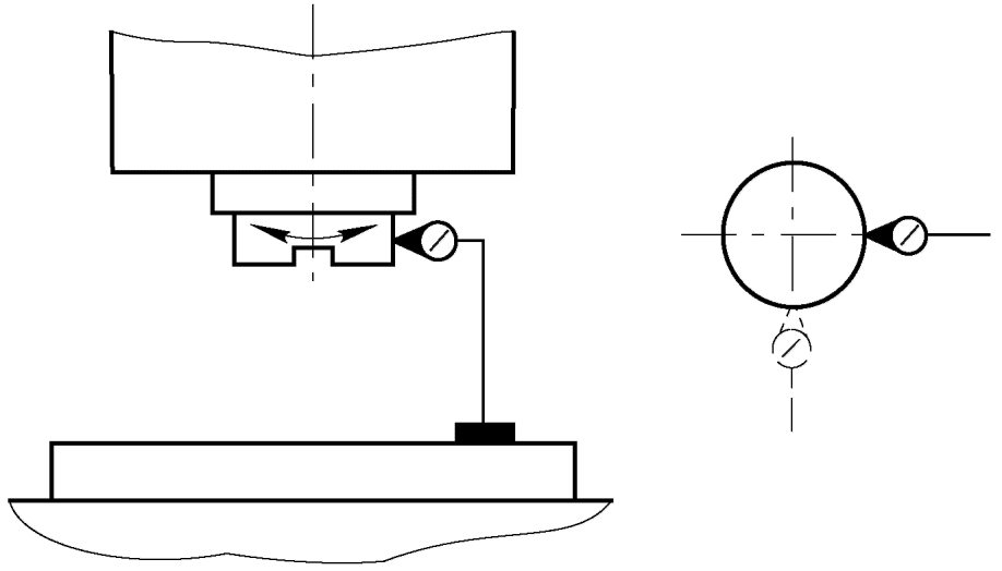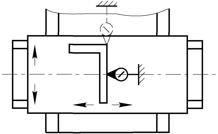 Относительное перемещение определяют как среднее арифметическое двух измерений. Перед вторым измерением шпиндельной бабке, столу сообщают перемещение с последующей установкой в заданное положение, а шпиндель поворачивают на 180°.