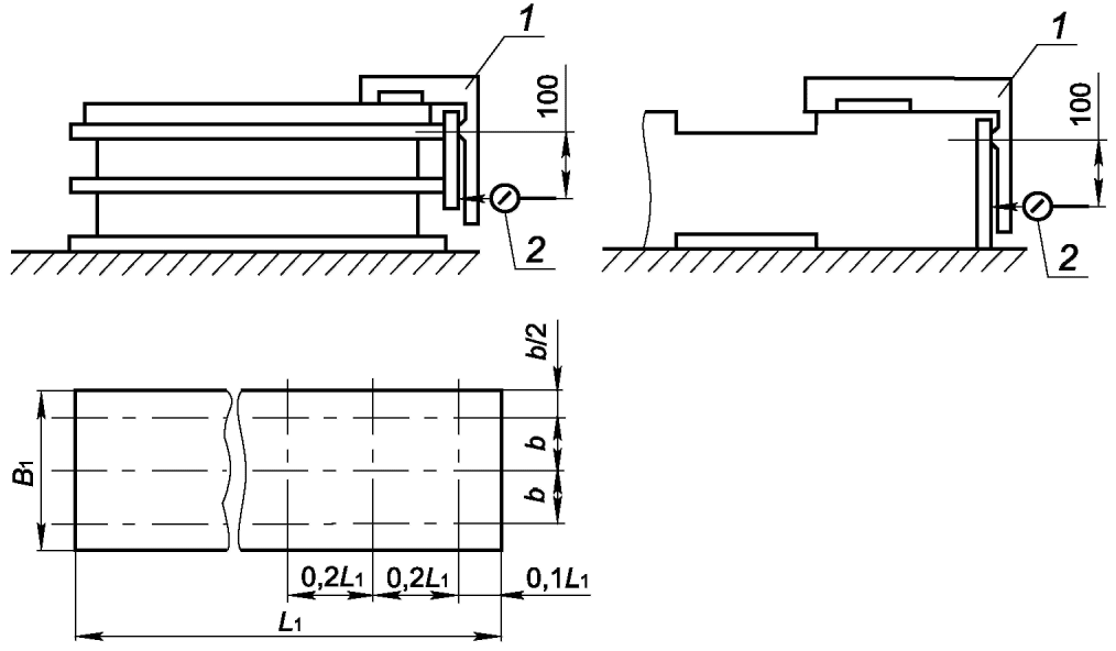 пункту 2 таблицы 27 - с использованием прибора для измерения длин, установленного так, чтобы измерительный наконечник касался проверяемой боковой поверхности параллелепипеда (в среднем сечении) и перемещающегося по поверочной линейке, установленной так, чтобы показания средств измерений были одинаковыми на концах проверяемой боковой поверхности.