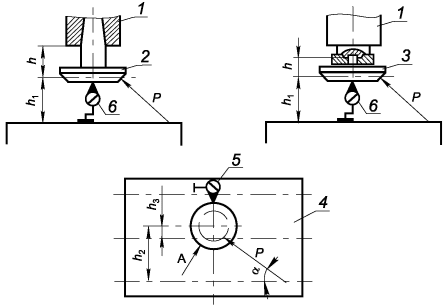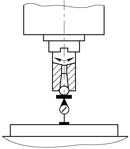 После установки всех средств измерений между столом и оправкой создают плавно возрастающую до заданной величины силу P. После этого фиксируют показания приборов 5 и 6.