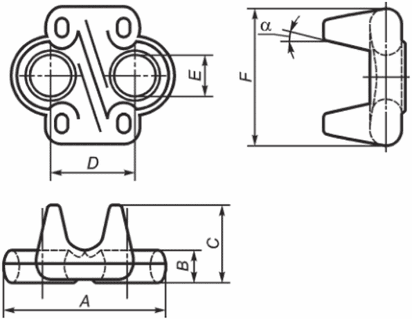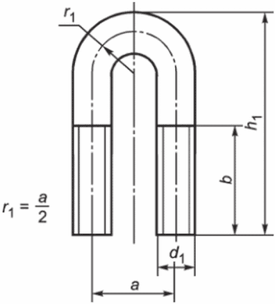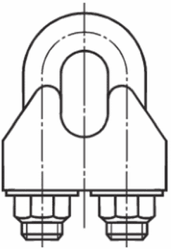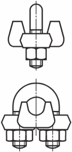 3.1 U-образный болтовой канатный зажим (U-bolt wire rope grip): U-образный болт, перемычка и гайки для обжимки двух частей каната посредством закручивания гайки.