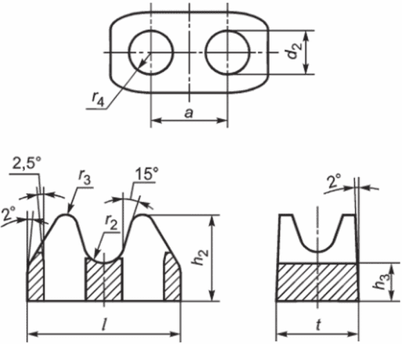 таблице B.2, относится к канатам RRL или RLL, конструкции 6 x 19 или 6 x 37, FC или IWRC, IPS или XIP. Если для размеров зажимов 1 дюйм и больше должен использоваться канат типа S или его аналог конструкции 6 x 19 с проволоками большего диаметра в наружном слое, устанавливается один дополнительный зажим.