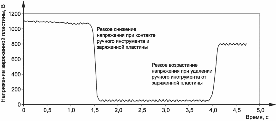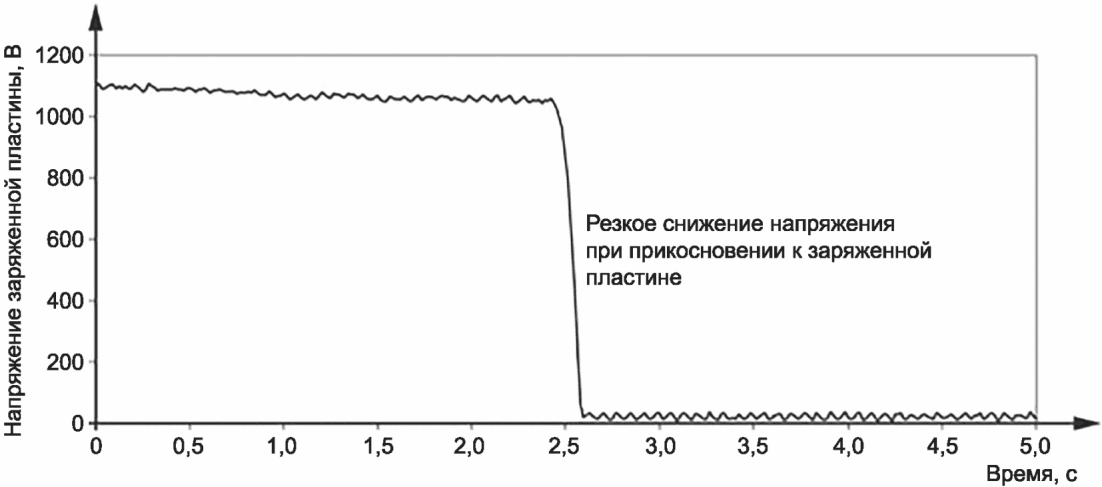 8) Полученное напряжение - это напряжение, которое возникло при разделении испытуемого объекта и проводящей пластины. Его следует указать в окончательном протоколе испытаний.