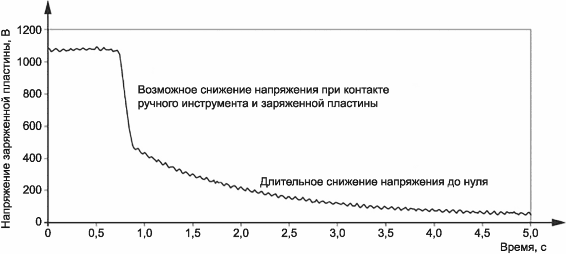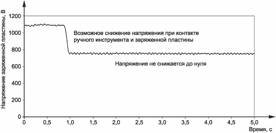Примечание - Справочно. В результате ручных операций трибоэлектрический эффект обычно проявляется за время 100 мс.