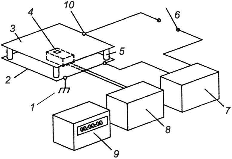 3) Заземляют проводящую пластину и обнуляют измеритель поля.