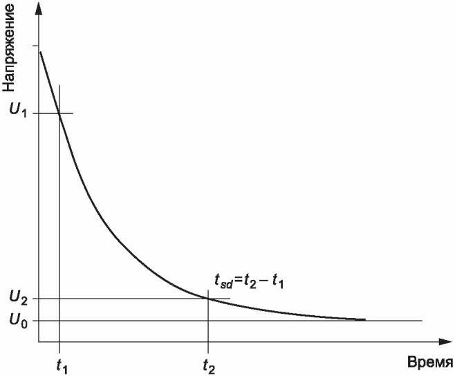 3.2 время стекания заряда (charge decay time): Время снижения напряжения, обусловленного зарядом, с его начального значения до определенной доли начального значения.