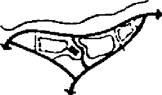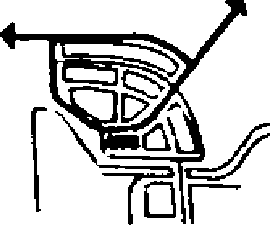 Конец I очереди | Газораспределительная станция (ГРС), газораспределительные пункты и установки согласно нагрузкам в микрорайонах; газораспределительные пункты на территории города (поселка) и коммунально-складских зон для котельных и других предприятий | Сеть высокого давления до ГРС тупиковая (ответвление от магистрального газопровода или от другой ГРС), сеть среднего и низкого давления кольцевая, совмещенная по трассе с другими коммуникациями | Охранная зона для отвода от магистрального газопровода | |
