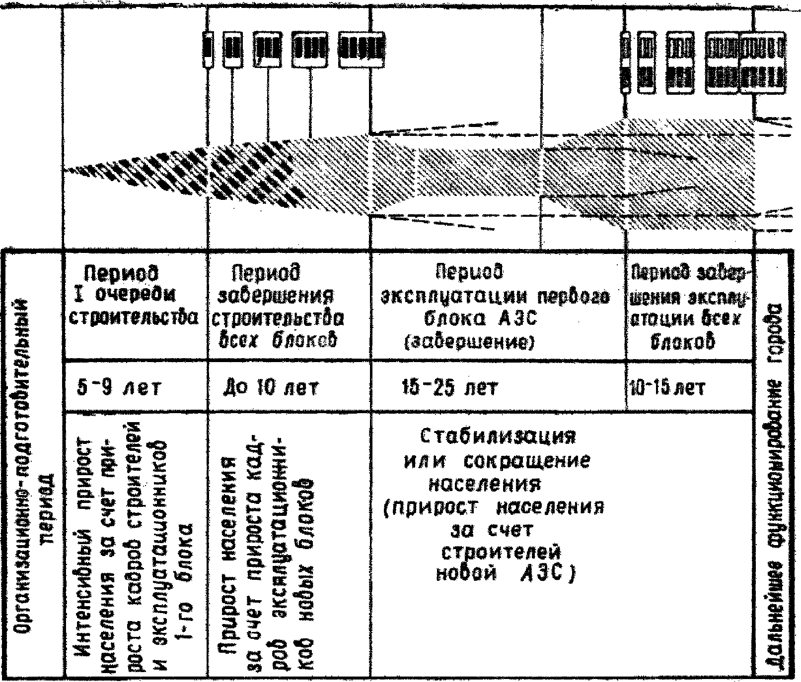 Строительство атомных электростанций в нашей стране сопровождается, как правило, возведением мест проживания обслуживающего их населения - городов и поселков АЭС. Особенности АЭС как основных объектов градообразующей базы этих населенных мест: разнообразие типов станций по конечной мощности, по типам применяемых реакторов, особенности демографического и социального состава населения поселков, динамичность их развития и особые санитарно-защитные требования - все это оказывает существенное влияние на решение вопросов размещения, развития и архитектурно-планировочной организации возникающих при АЭС градостроительных образований и должно получить соответствующее отражение в процессе их проектирования и строительства. Так, особенности развития градообразующей базы требуют выделения специфических этапов в развитии городов (поселков) АЭС, а демографический и социальный состав их населения предопределяет особые требования к подбору типов жилых и общественных зданий.