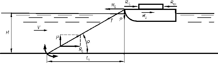 3.2.1 Должны быть проверены прочность выводного звена наплавного моста с учетом горизонтального изгиба от волны, течения, ветра и прочность наплавного моста при обрыве одного из раскреплений.