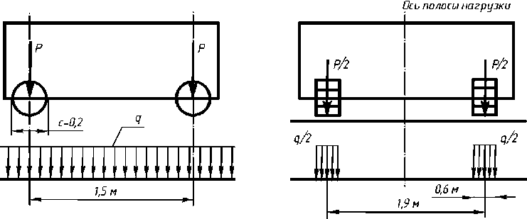 q - погонное давление эквивалентной нагрузки от подвижной сосредоточенной нагрузки P, кН/м: q = 3P/(2l1);
