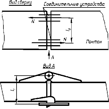 3.2.3 Для наплавных мостов на жесткосочлененных опорах при расстоянии между осями соединительных устройств в поперечном направлении понтонов моста