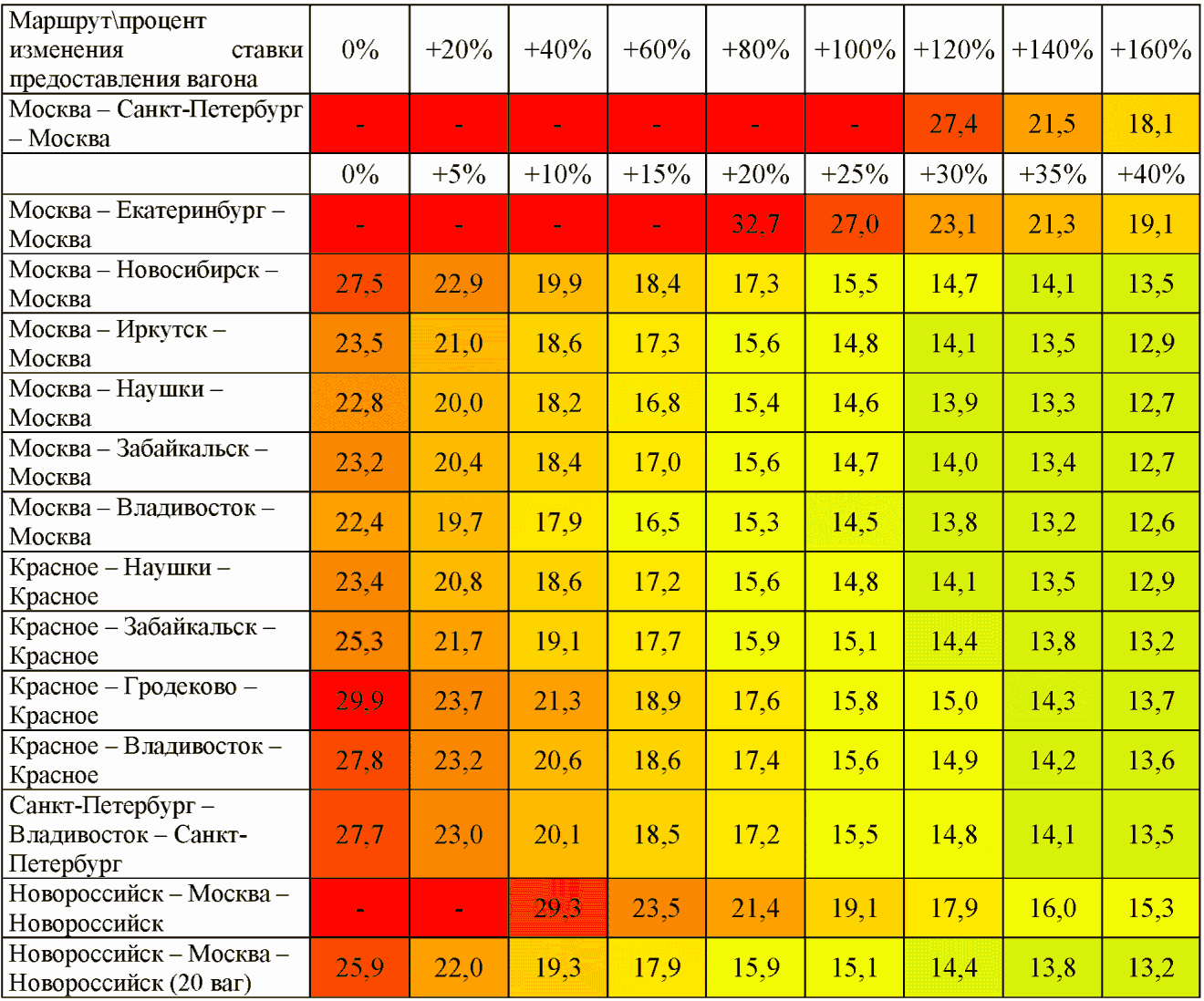13 | Новороссийск - Москва - Новороссийск | 1694 | 31 605 | 31 605 | 36 768 |