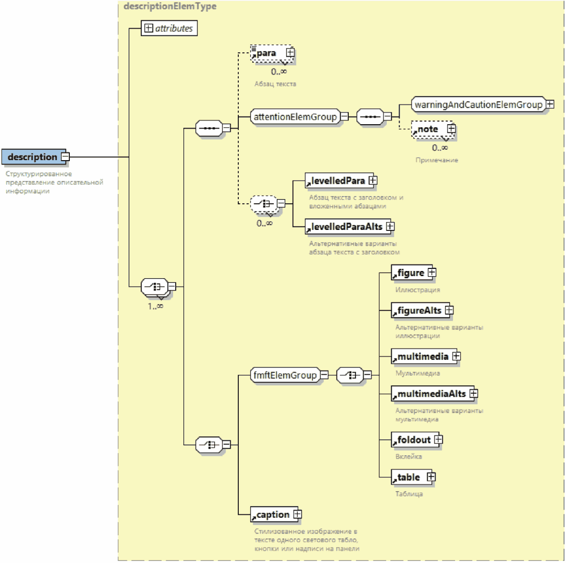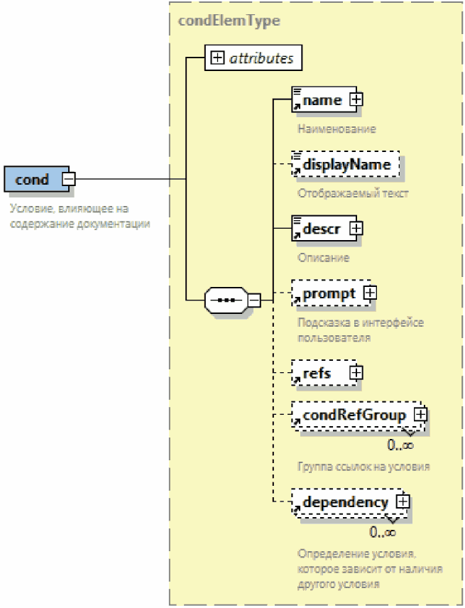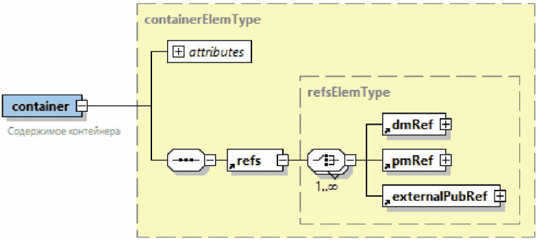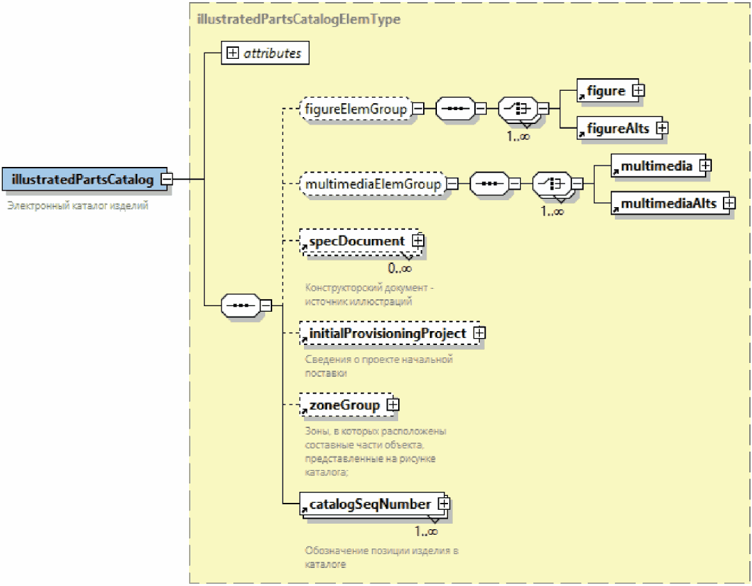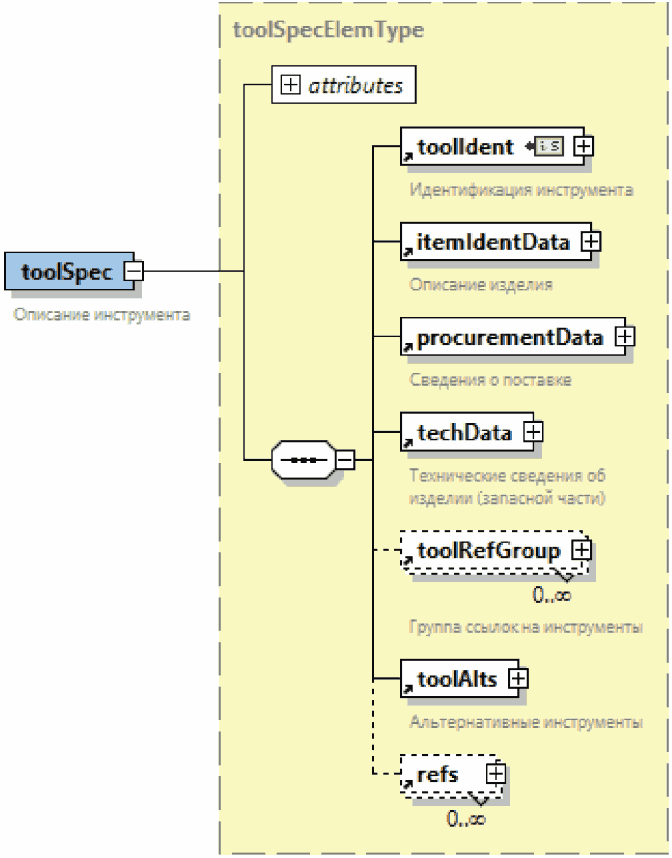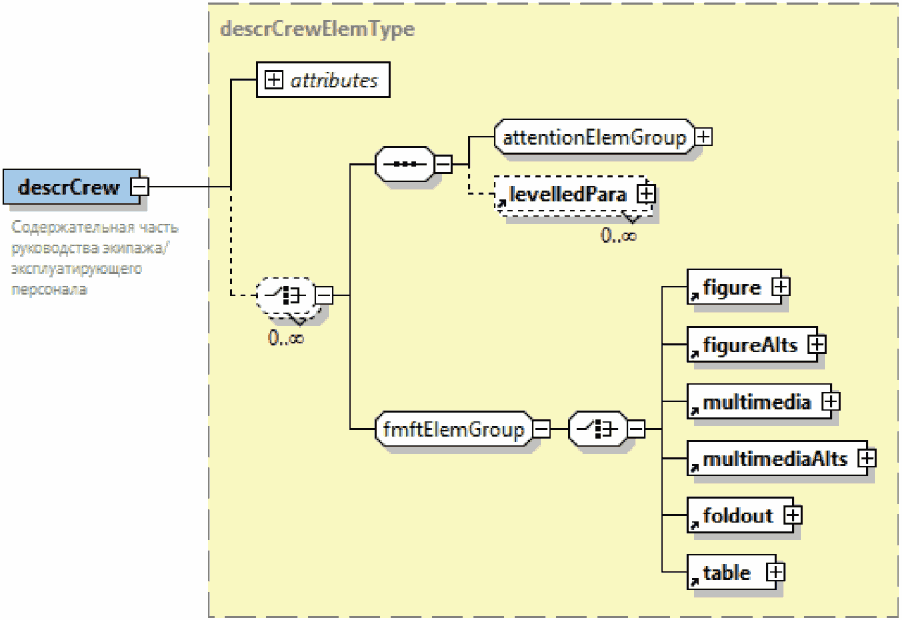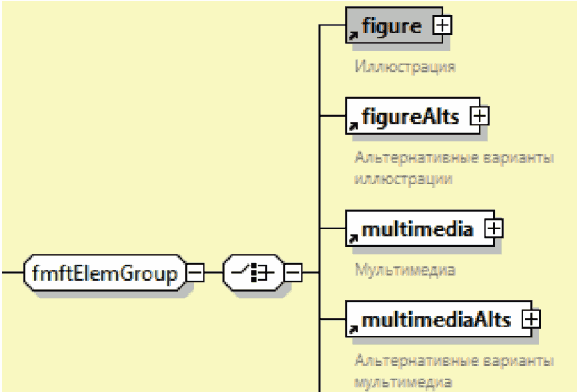 | Элемент с вложенными элементами. Знак "плюс" на правой границе графического обозначения элемента означает, что элемент может включать вложенные элементы |
