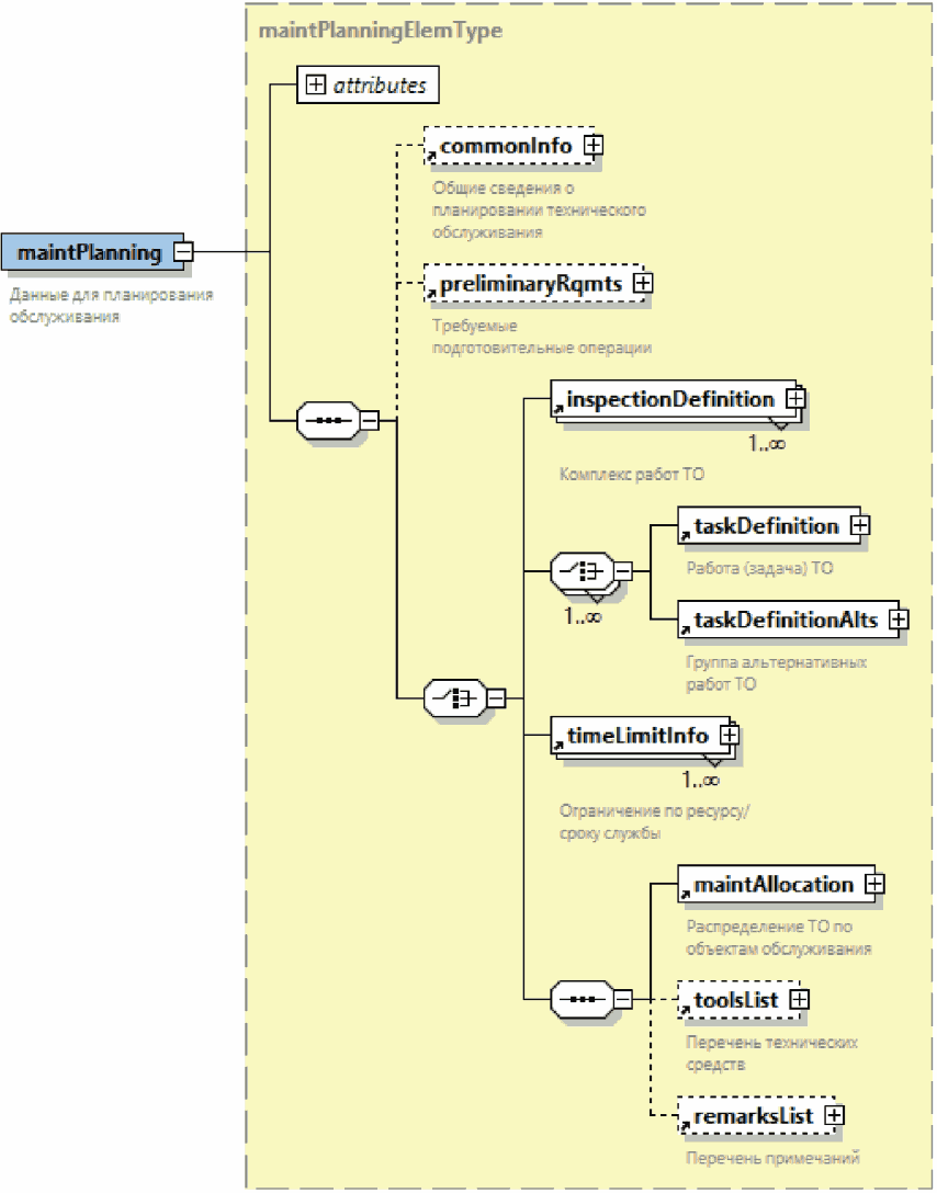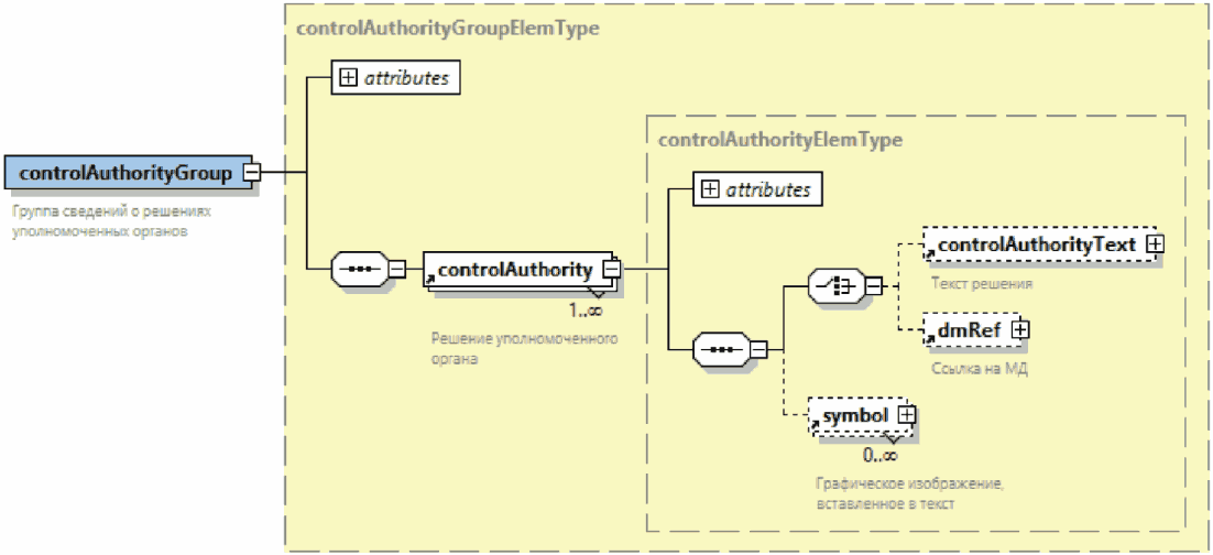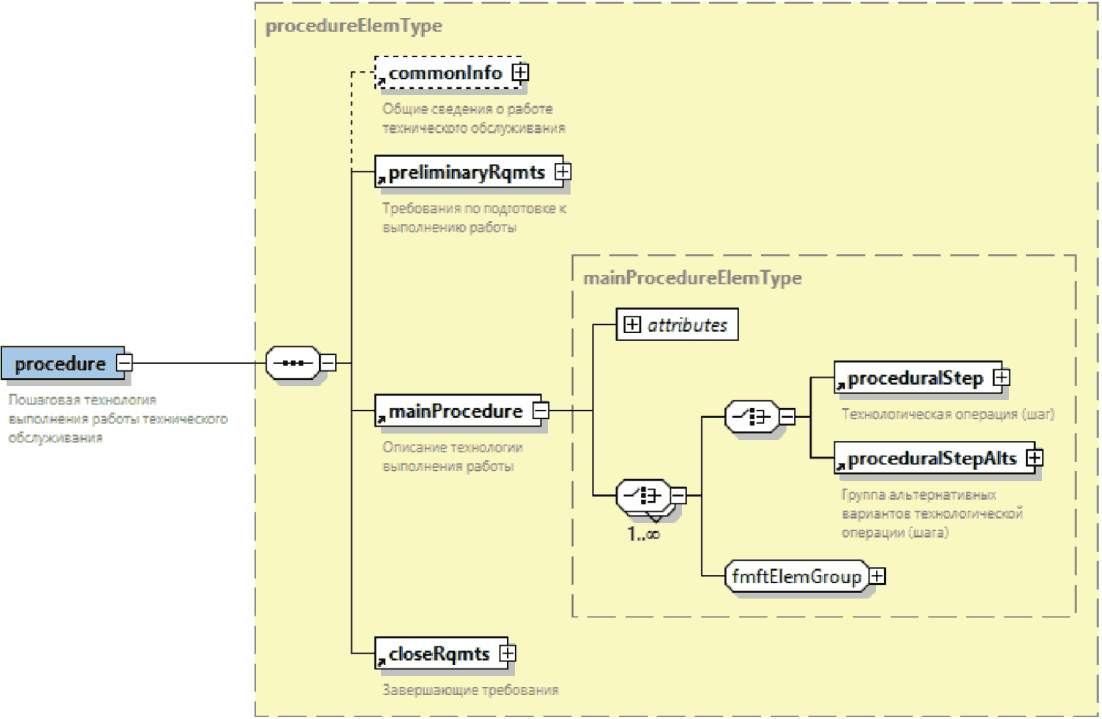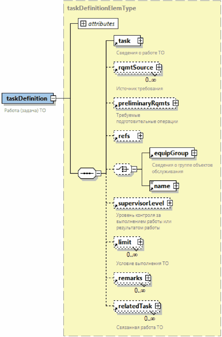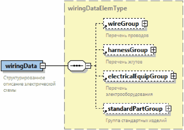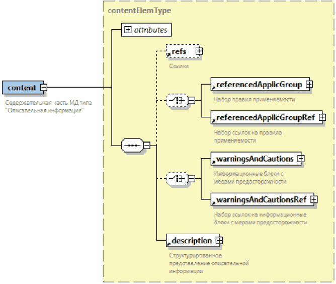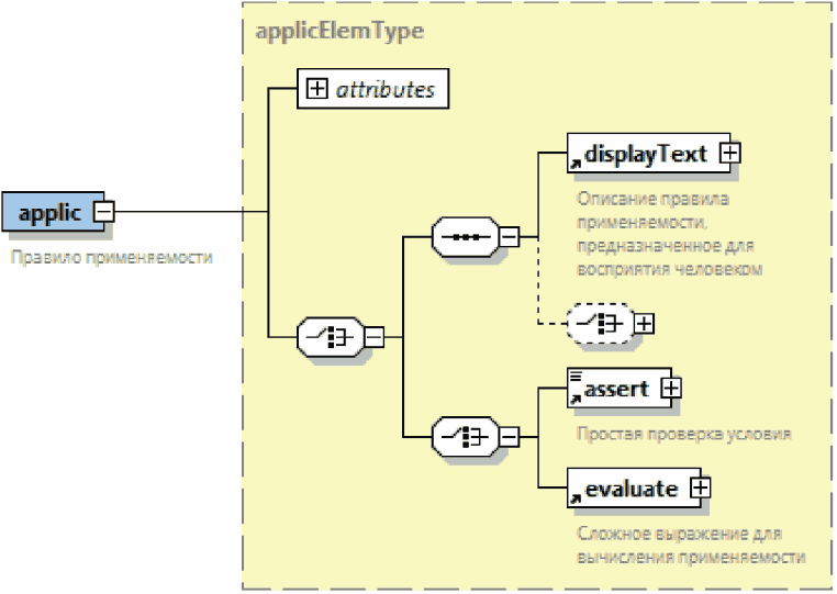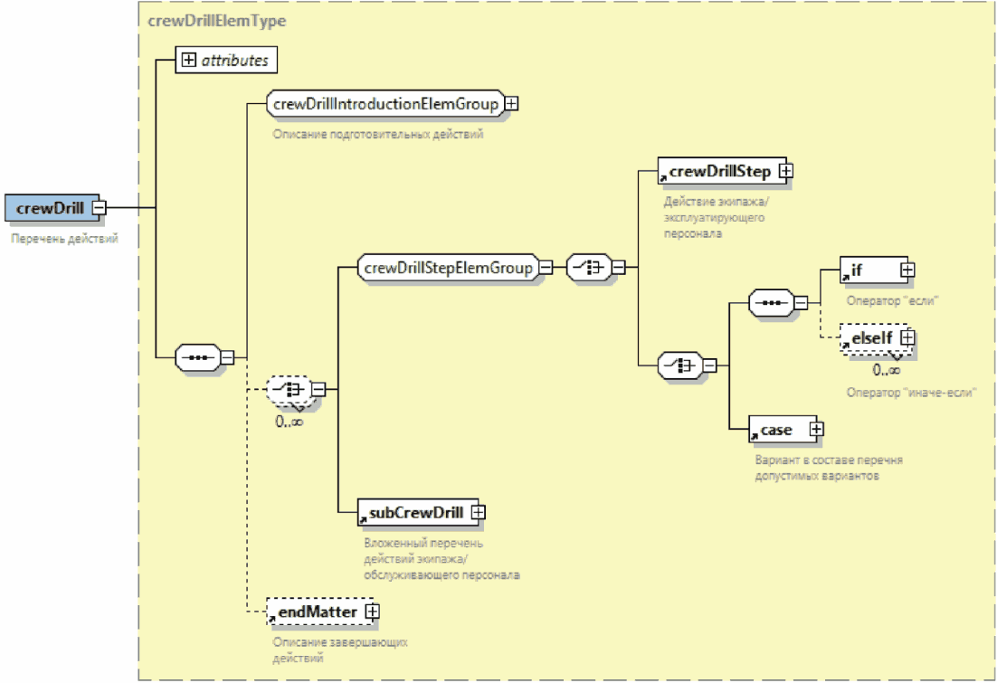 | Элемент с вложенными элементами. Знак "плюс" на правой границе графического обозначения элемента означает, что элемент может включать вложенные элементы |