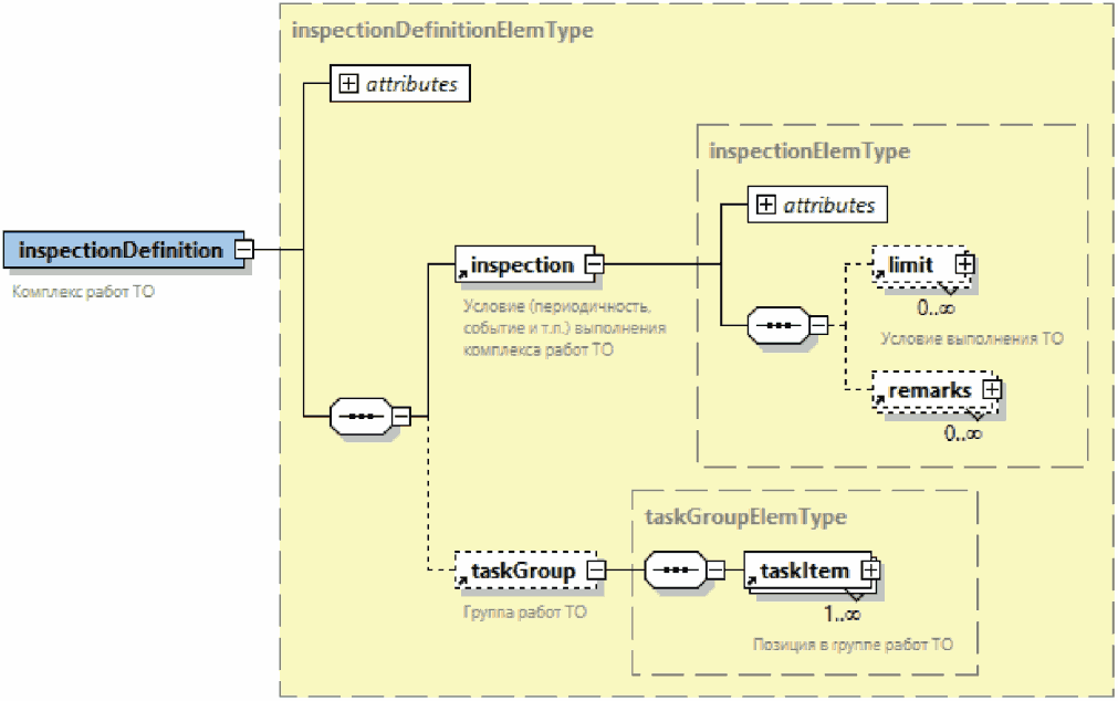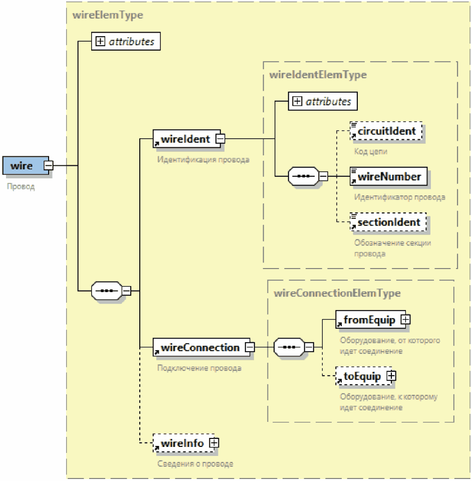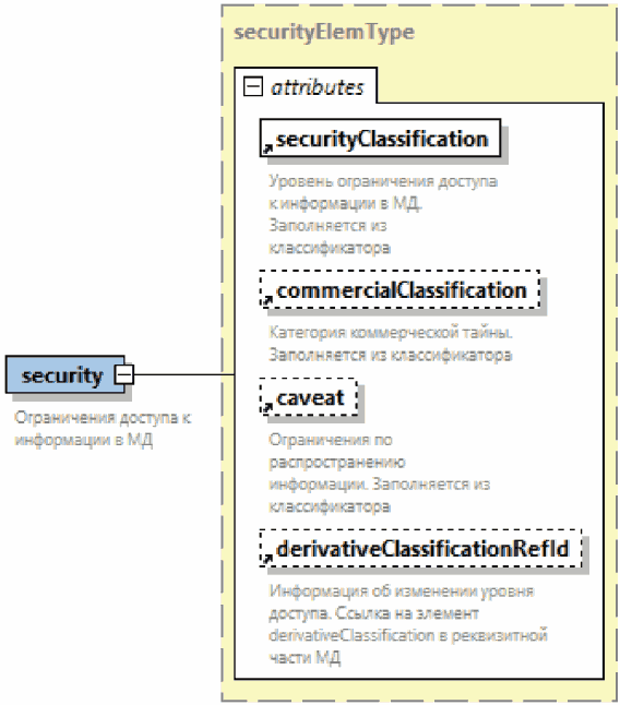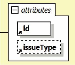 | Раскрытая группа атрибутов элемента. Атрибут, имеющий графическое обозначение со сплошным контуром (пример - атрибут "id"), должен обязательно присутствовать в файле и быть заполненным. Атрибут, имеющий графическое обозначение с пунктирным контуром (пример - атрибут "issueType"), может отсутствовать в файле или быть незаполненным |
