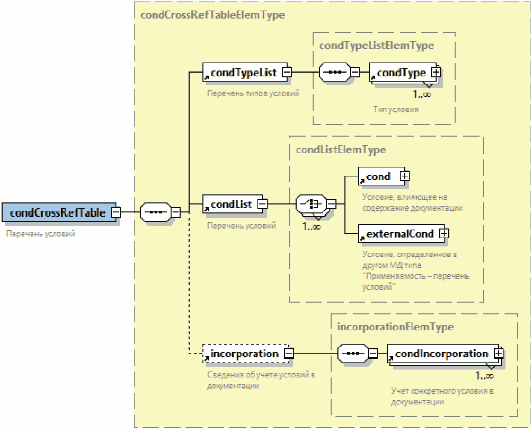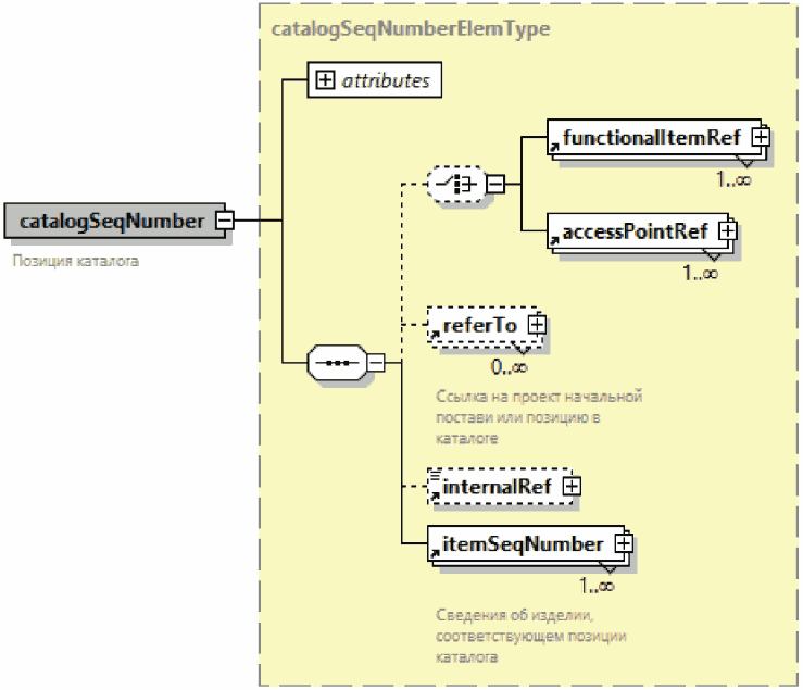 | Повторяющийся необязательный элемент. Элемент, имеющий графическое обозначение с пунктирным контуром и отметкой  внизу справа, может отсутствовать в файле или может повторяться неограниченное количество раз |