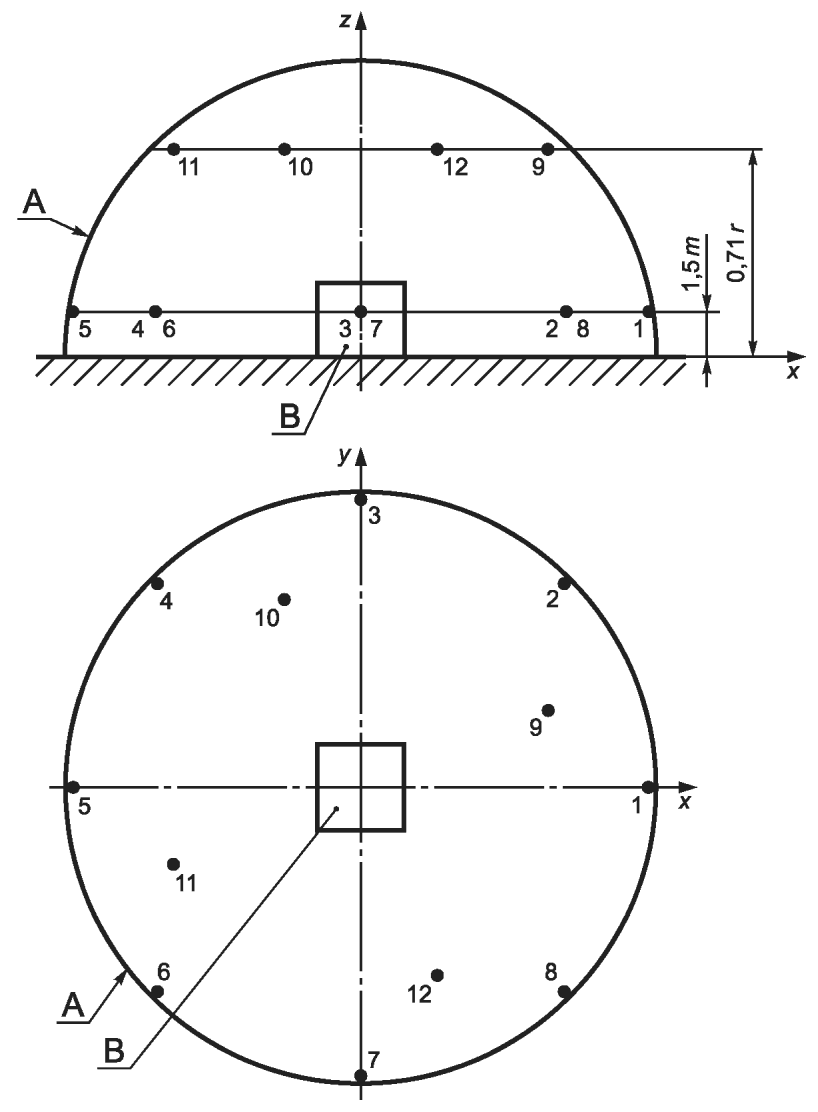 Методы настоящего стандарта относятся к техническим методам по классификации ISO 12001 и предполагают проведение измерений в условиях, близких к условиям свободного звукового поля над звукоотражающей плоскостью. Такие условия могут быть созданы в специально оборудованных лабораторных помещениях, промышленных помещениях или на площадках на открытом воздухе. В идеале испытуемый источник шума должен быть установлен на звукоотражающей плоскости в большом открытом пространстве. Если испытуемый источник шума при его применении устанавливают в цеховом помещении, то в результат измерения вносят поправку на отражение от близлежащих предметов, стен и потолка, а также поправку на фоновый шум в помещении.