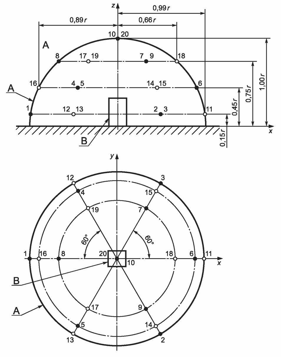 | ISO 3746, Acoustics - Determination of sound power levels and sound energy levels of noise sources using sound pressure - Survey method using an enveloping measurement surface over a reflecting plane (Акустика. Определение уровней звуковой мощности и звуковой энергии источников шума по звуковому давлению. Ориентировочный метод с использованием измерительной поверхности над звукоотражающей плоскостью) |