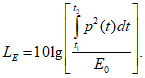 Звуковую мощность, излученную источником шума в испытательное пространство, рассчитывают по результатам измерения квадрата звукового давления, среднего по охватывающей источник измерительной поверхности заданной площади. Звуковую энергию отдельного шумового события, связанного с источником, рассчитывают по известным значениям звуковой мощности и продолжительности события.