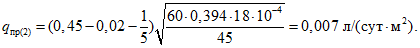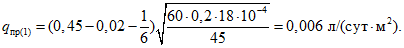Аналогично для 3-го участка qп.в(3) = 0,587 л/(сут·м2), qпр(3) = 0,007 л/(сут·м2), qст(3) = 0,58 л/сут, для 4-го участка qп.в(4) = 0,78 л/(сут·м2), qпр(4) = 0,004 л/(сут·м2), qст(4) = 0,776 л/сут; для 5-го участка qп.в(5) = 1,776 л/(сут·м2), qпр(5) = 0, qст(5) = 1,776 л/сут; для 6-го участка qп.в(6) = 2,776 л/(сут·м2), qпр(6) = 0; qст(6) = 2776 л/сут.