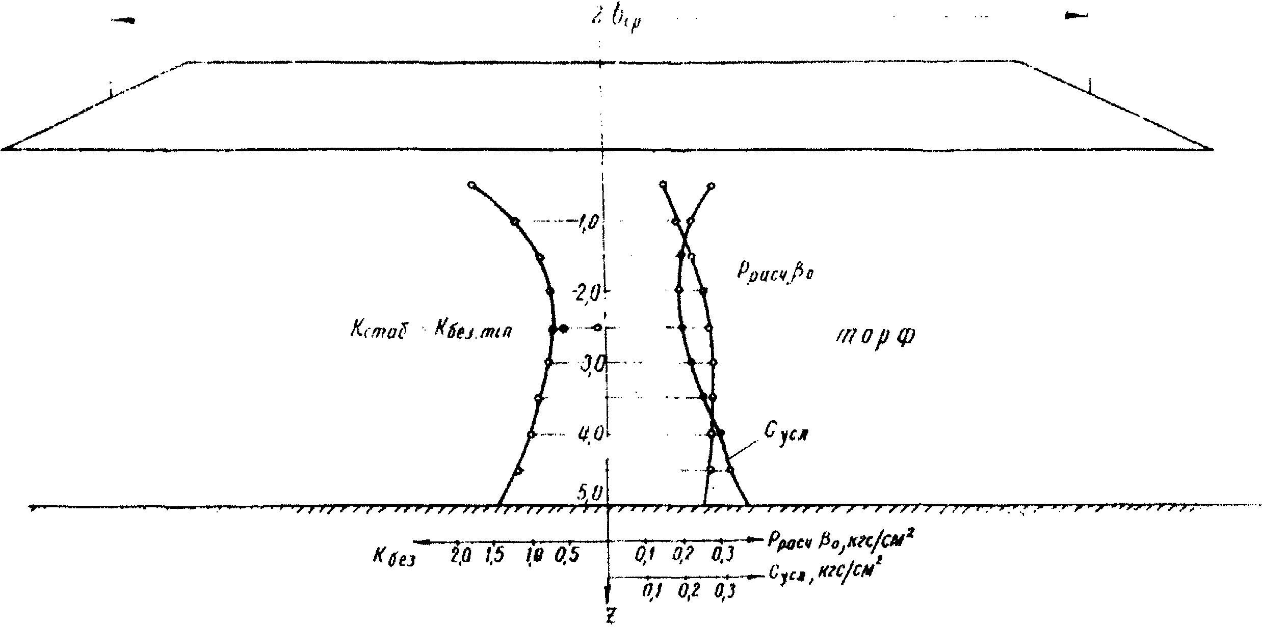 Устойчивость основания связана с интенсивностью отсыпки насыпи. Поэтому коэффициент безопасности определяют для двух крайних режимов отсыпки: