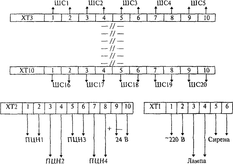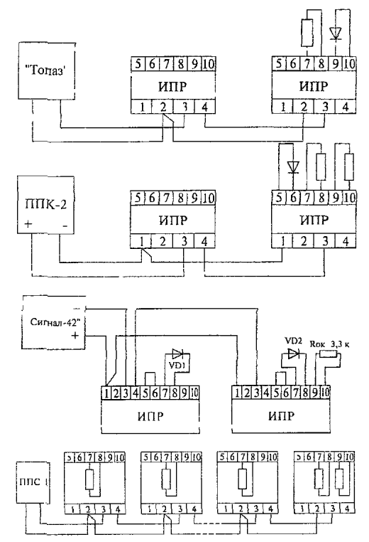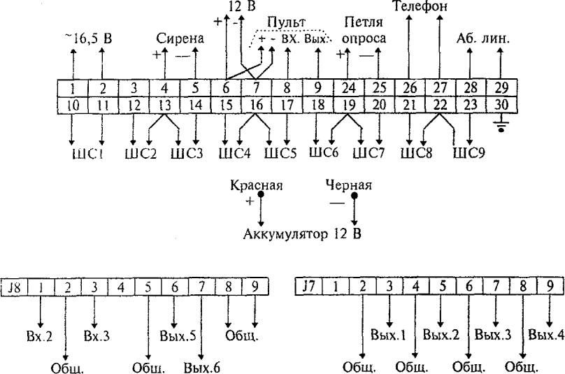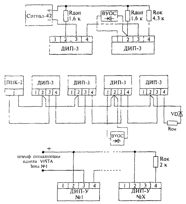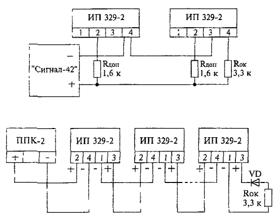 Шлейф охранной (пожарной, охранно-пожарной) сигнализации - это электрическая цепь, соединяющая выходные цепи охранных (пожарных, охранно-пожарных) извещателей, включающая вспомогательные (выносные) элементы (диоды, резисторы, конденсаторы и т.п.) и соединительные провода, предназначенные для передачи на прибор приемно-контрольный извещений о проникновении, попытке проникновения (пожаре) и неисправности, а в некоторых случаях и для подачи электропитания на извещатели.