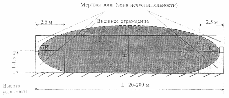 По дальности действия оптико-электронные и радиоволновые охранные извещатели для открытых площадок и периметров объектов подразделяются на: малой дальности - до 50 м, средней дальности - от 50 до 200 м, большой дальности - свыше 200 м.