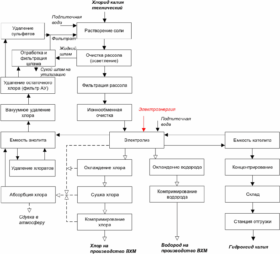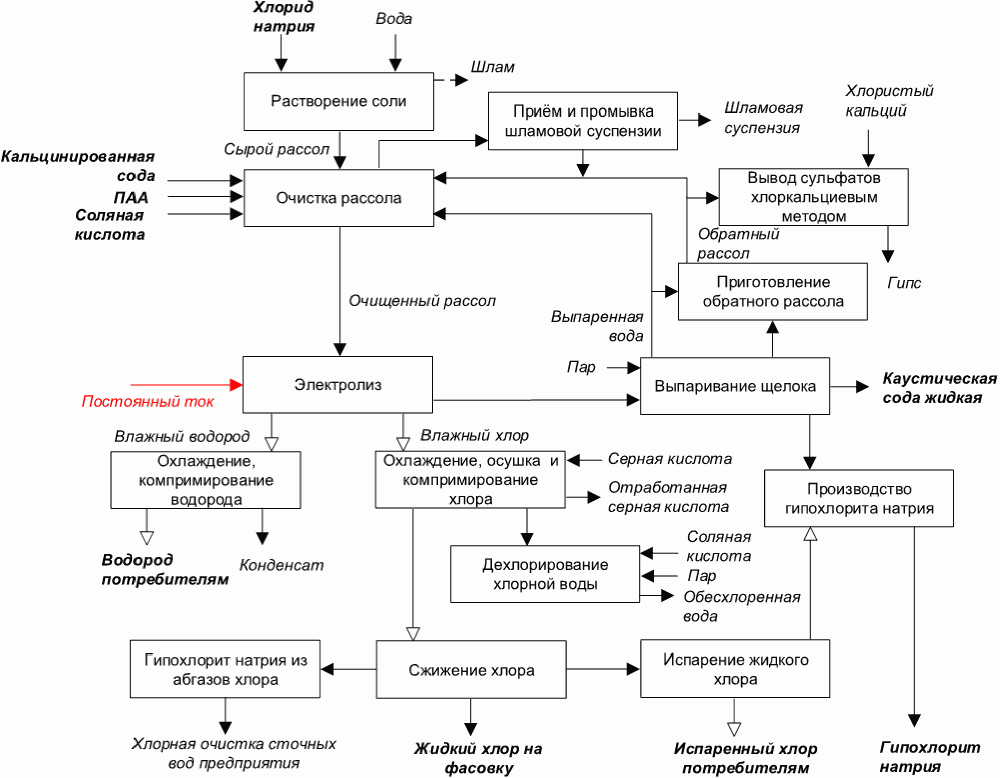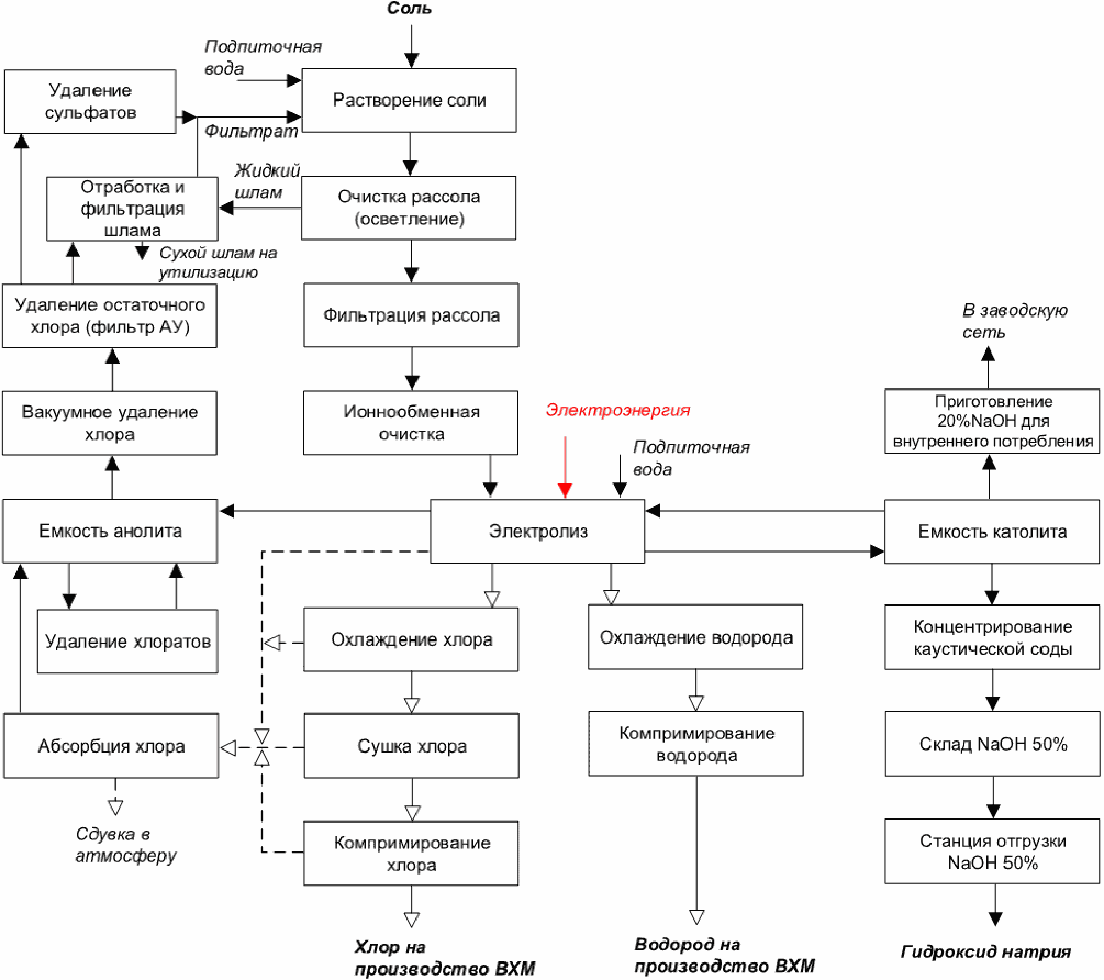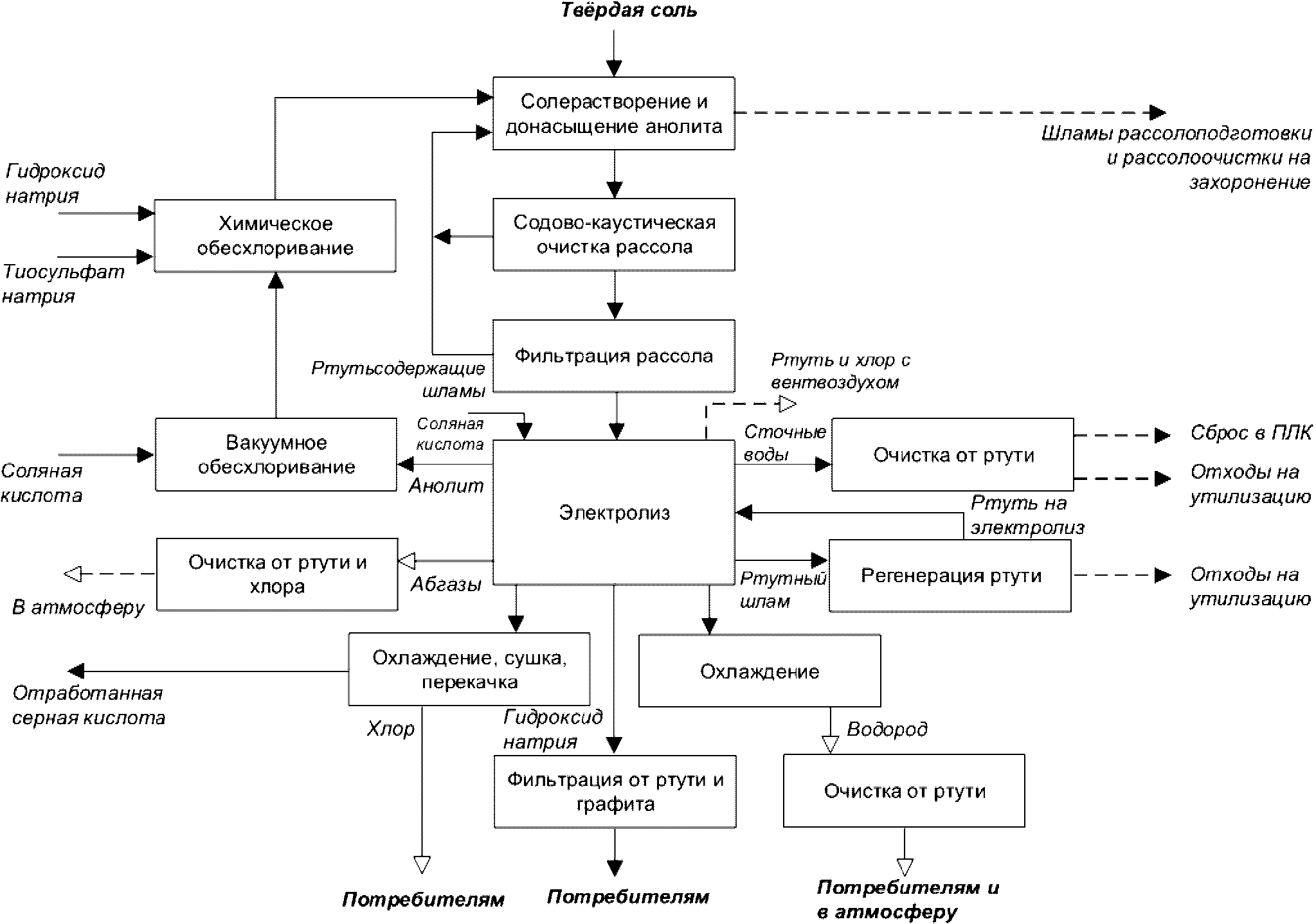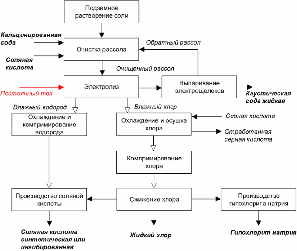 - процессы хлорщелочного производства и производство соляной кислоты;