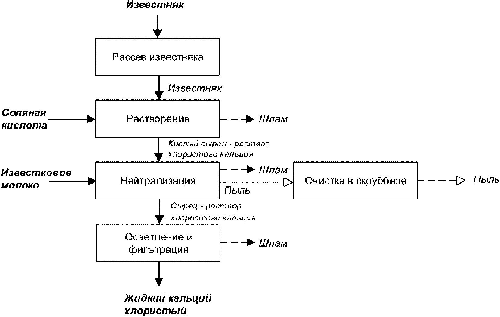 Получение раствора хлористого кальция 32% масс. | кг CO2-экв./т хлористого кальция 32% масс. | - | 122 |
