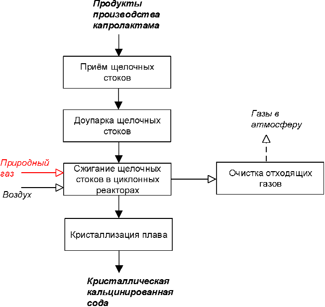 Получение соды кальцинированной из щелочных стоков производства капролактама | кг CO2-экв./т кальцинированной соды | - | 1886 |