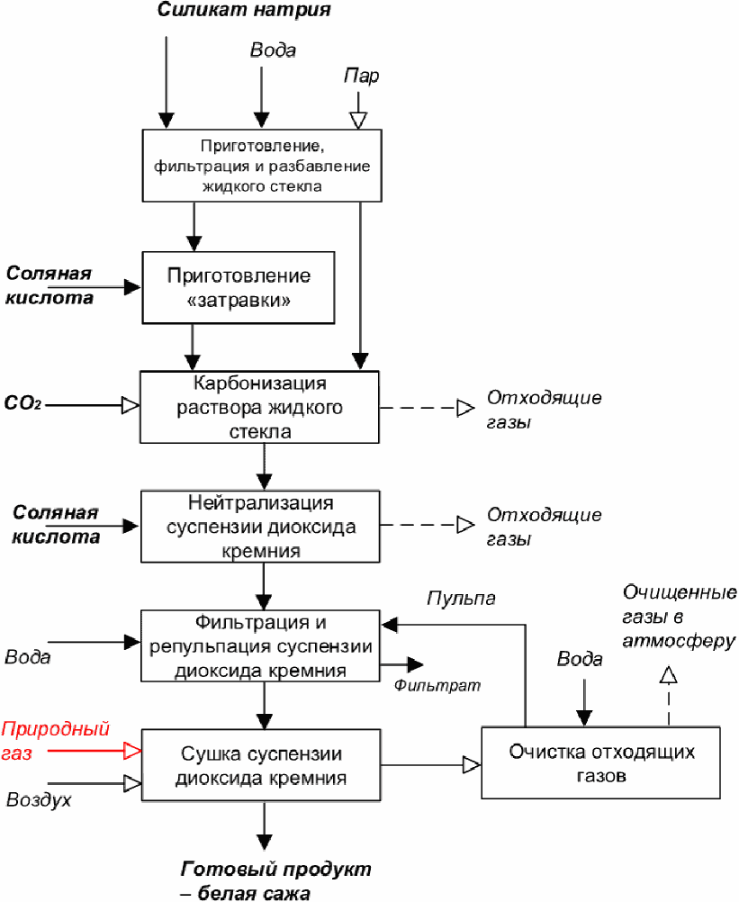 Производство белых саж | кг CO2-экв./т белой сажи | - | 2514 |