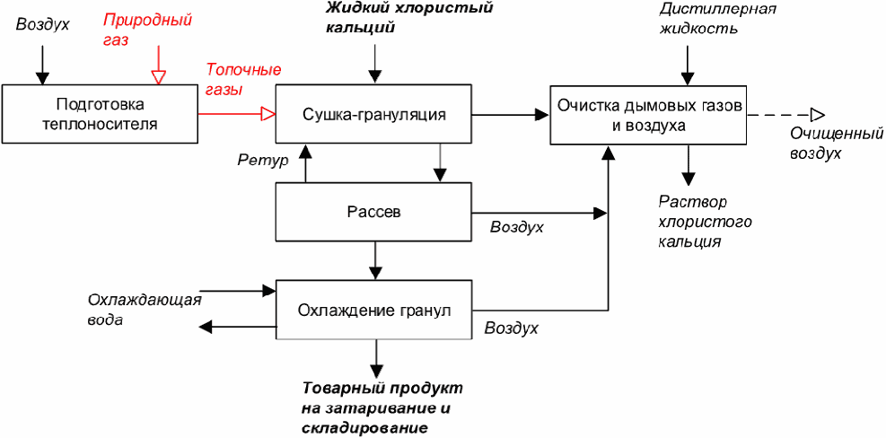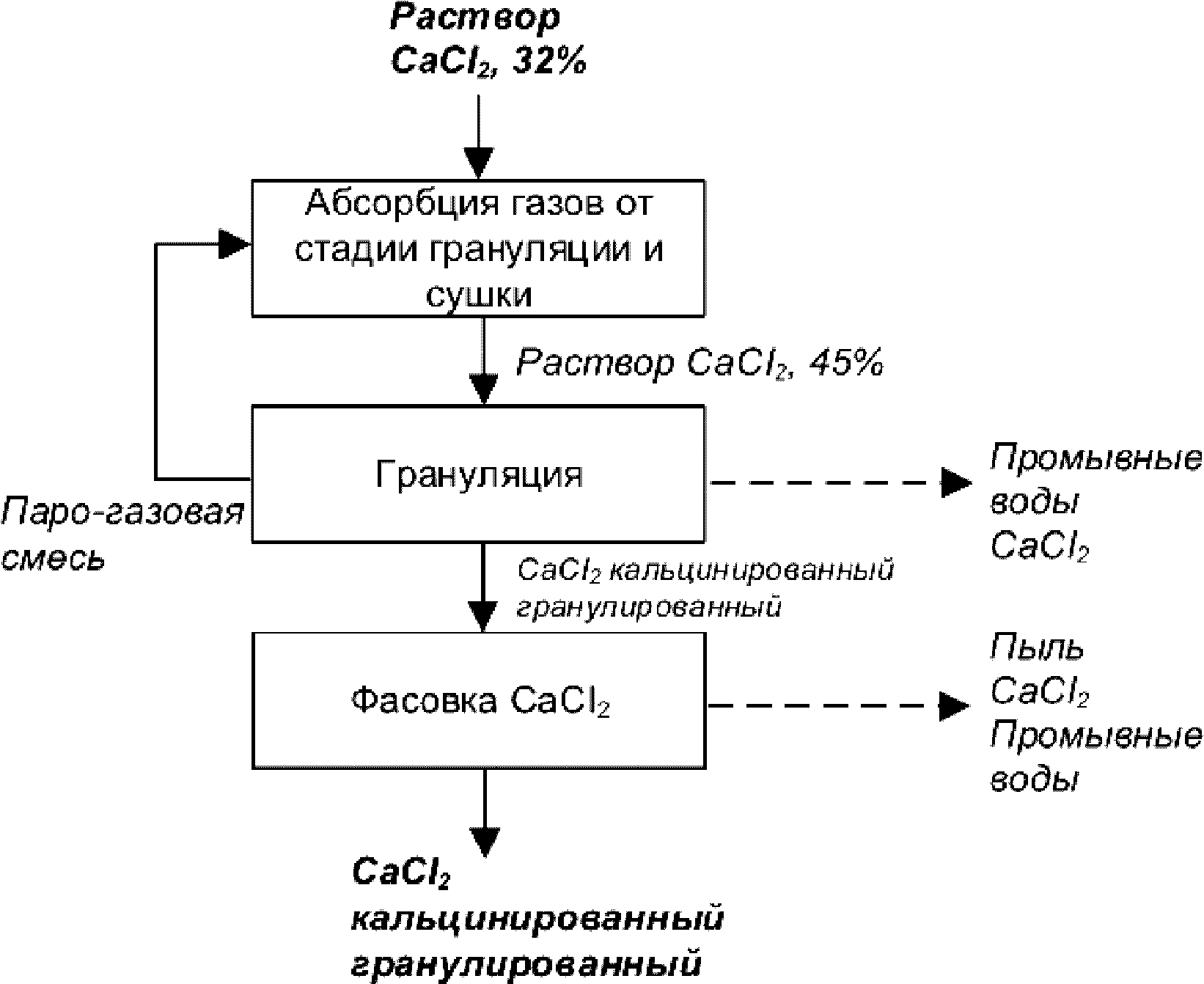 Производство гранулированного хлористого кальция | кг CO2-экв./т гранулированного хлористого кальция | - | 400 |