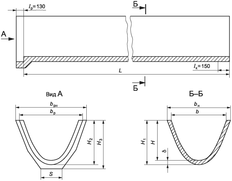 Примечания 1 Размеры и масса лотков приведены без учета использования полимерного покрытия и футеровочных чехлов. 2 Справочная масса лотков приведена для железобетона средней плотностью 2450 кг/м3. |