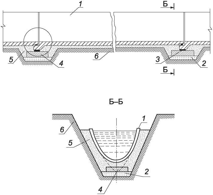 8.3 Лотки типов ЛРГ рекомендуется укладывать в траншеях с естественными откосами. При этом лотки должны опираться раструбами на железобетонные плиты, устанавливаемые на уплотненное плоское песчаное или песчано-гравийное, или песчано-щебеночное основание (см.