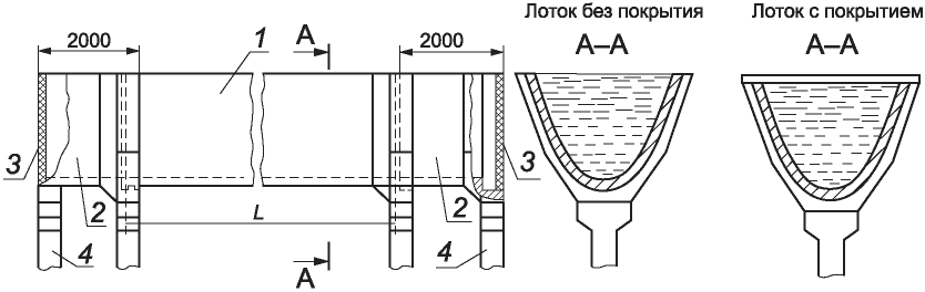 1 - лоток; 2 - покрытие лотка; 3 - железобетонное седло
